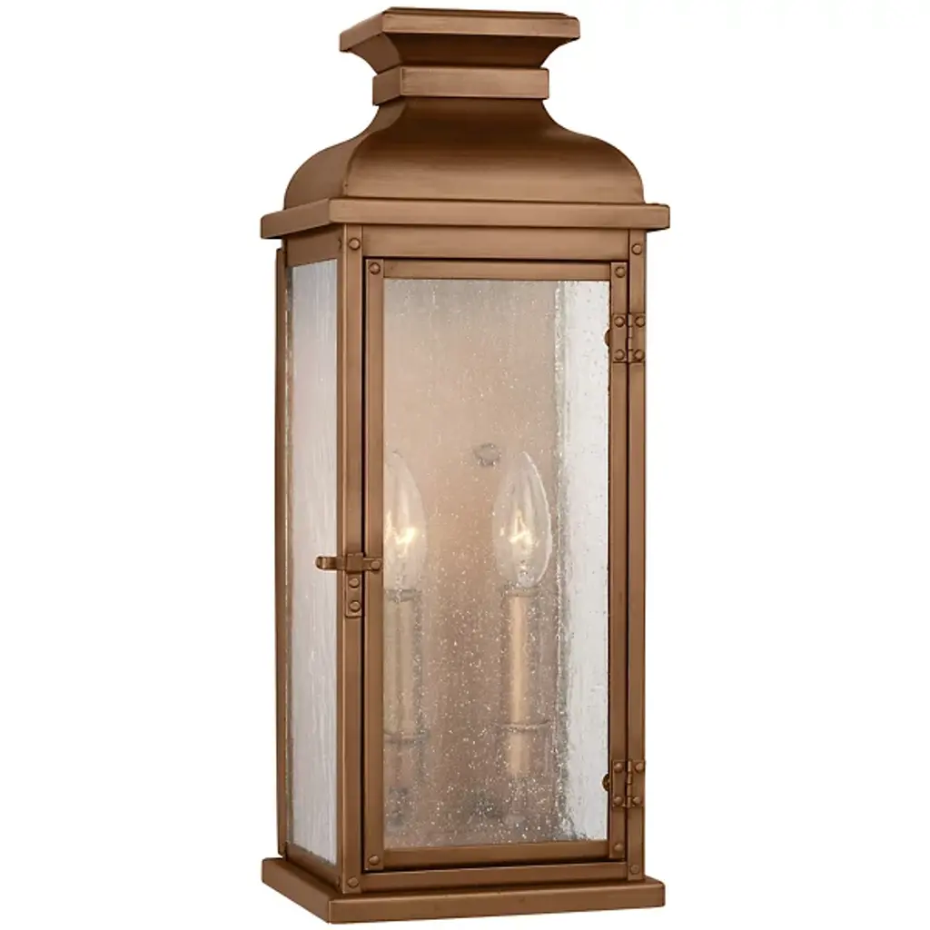 Measures 18.75-Inches high and 7.5-Inches wide and 6.5-Inches deepE12/Candelabra sockets, 2 x 60 watts maximum wattageUL-CUL listed for damp locationsSolid Copper; Historic Glass, Blackened Solder; Lacquer coating for protection from the elements; Finish will darken over time but will not get verdigrisMakes a Great GiftEmbrace the charm of a bygone era with our meticulously crafted Town Lattice Outdoor Wall Light, reminiscent of the warm glow that once graced the facades of historic homes. This versatile outdoor light fixture radiates a welcoming warmth that enhances any space it graces. With a five-year guarantee, you can trust in its enduring quality. Standing at an impressive 18.75 inches in height and spanning 7.5 inches in width, with a depth of 6.5 inches, this outdoor wall light strikes the perfect balance between size and visual impact. Its design encapsulates the timeless appeal of vintage lighting, making it a captivating addition to your outdoor decor. Whether adorning your porch, patio, or garden, this Town Lattice Outdoor Wall Light effortlessly captures the essence of nostalgia and elegance. Its classic silhouette and historic charm create a captivating focal point that leaves a lasting impression on all who behold it. Allow this beautifully crafted outdoor wall light to transport you to a time when the warm glow of such lights adorned the homes of yesteryears. With its enduring style and timeless allure, it not only adds visual appeal but also infuses a sense of heritage into your outdoor space, creating a welcoming atmosphere for your family and guests to enjoy.