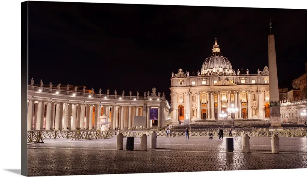 Town Square With St. Peters Basilica In The Background, Piazza Del Popolo, Rome, Italy