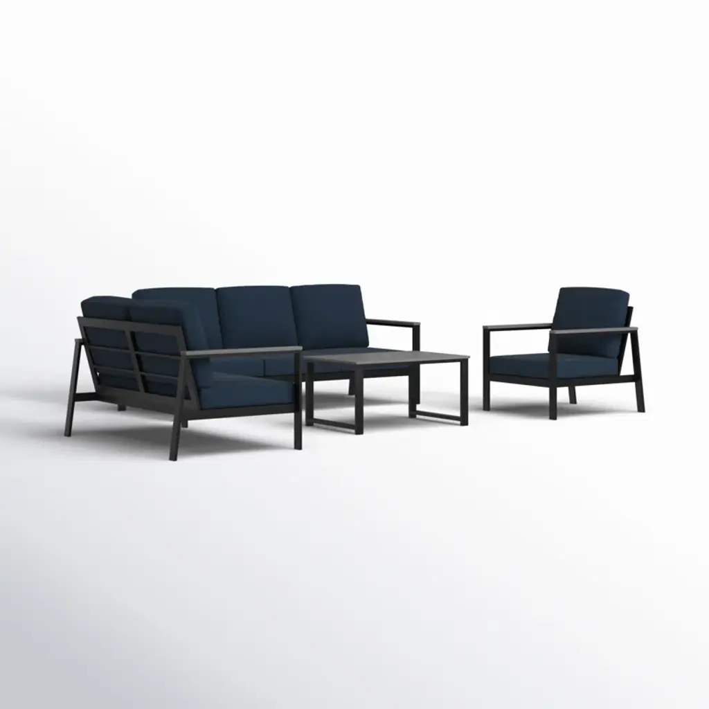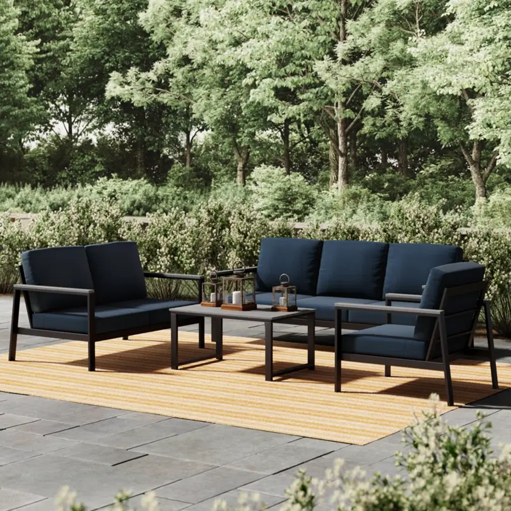 Full of modern style with unmatched versatility, our 4-piece outdoor conversation set includes a sofa, two armchairs, and a coffee table for patio and backyard get-togethers. A powder-coated aluminum frame for each piece is UV- and weather-resistant, ideal for outdoor use. High-performance Sunbrella® cushion covers are removable for easy cleaning.