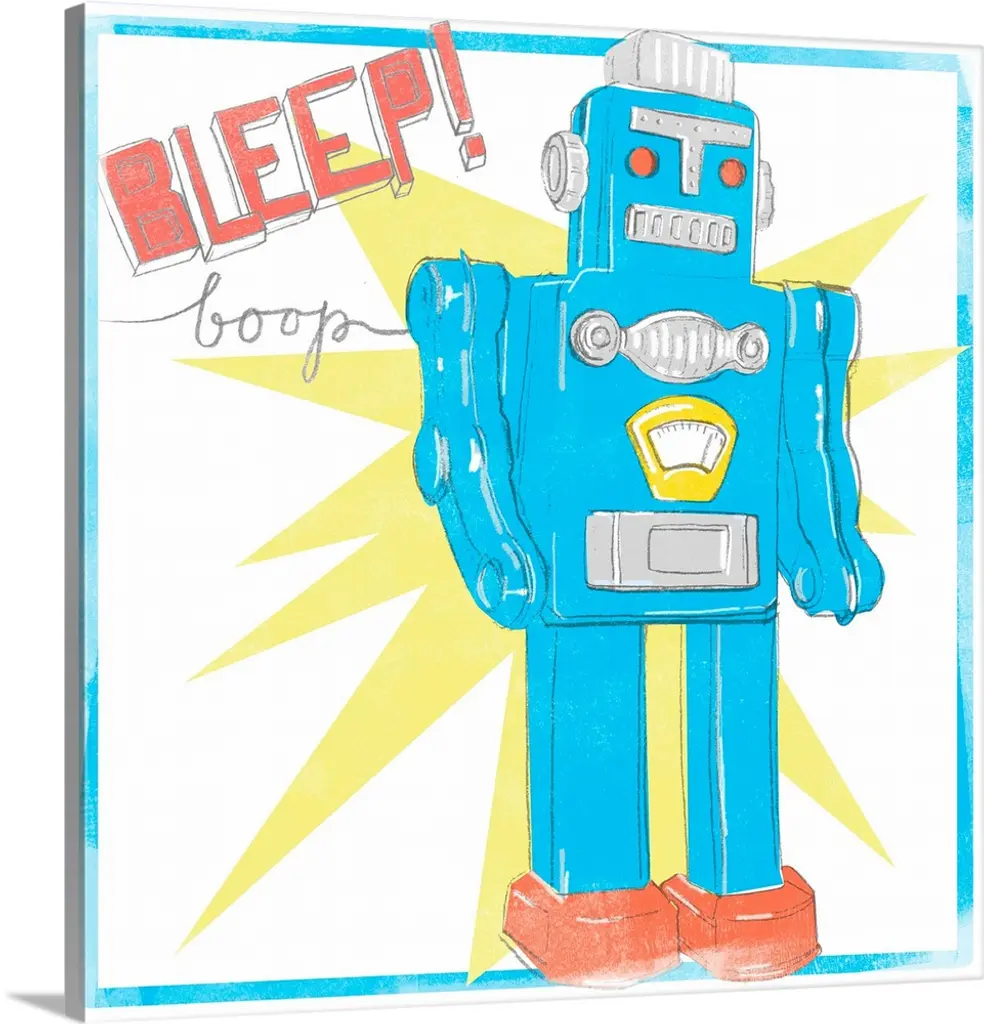 Toy Tin Robots I wall art for home and office decor. Discover canvas art prints, photos, mural, big canvas art and framed wall art in GreatBigCanvas.com's varied collections.