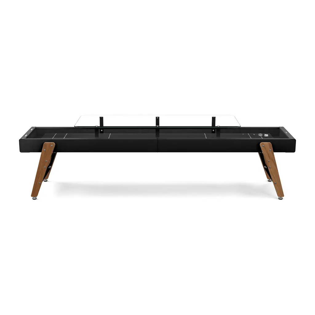 Bringing sophistication and refinement to any gathering, the Track Dining Shuffleboard from RS Barcelona impresses with a durable epoxy-resin playing field, FSC-certified iroko wood legs and a colorful steel silhouette. The addition of an ultra-sleek glass top turns this game table into the hottest spot to gather for a round of drinks and competitive play. Highlights