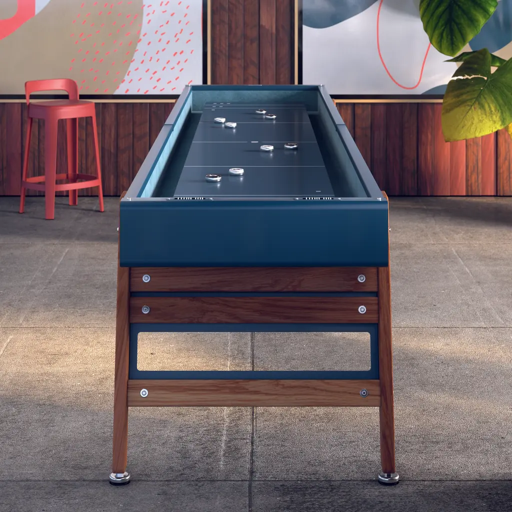 Experience a luxurious take on a classic game with the Track Shuffleboard from RS Barcelona. Featuring exceptional craftsmanship, its steel body is accented by sustainably-sourced iroko wood legs, complemented by a sleek powder coating for unmatched durability. An epoxy-resin playing field ensures exceptional playing conditions, inspiring friendly competition day and night. Highlights