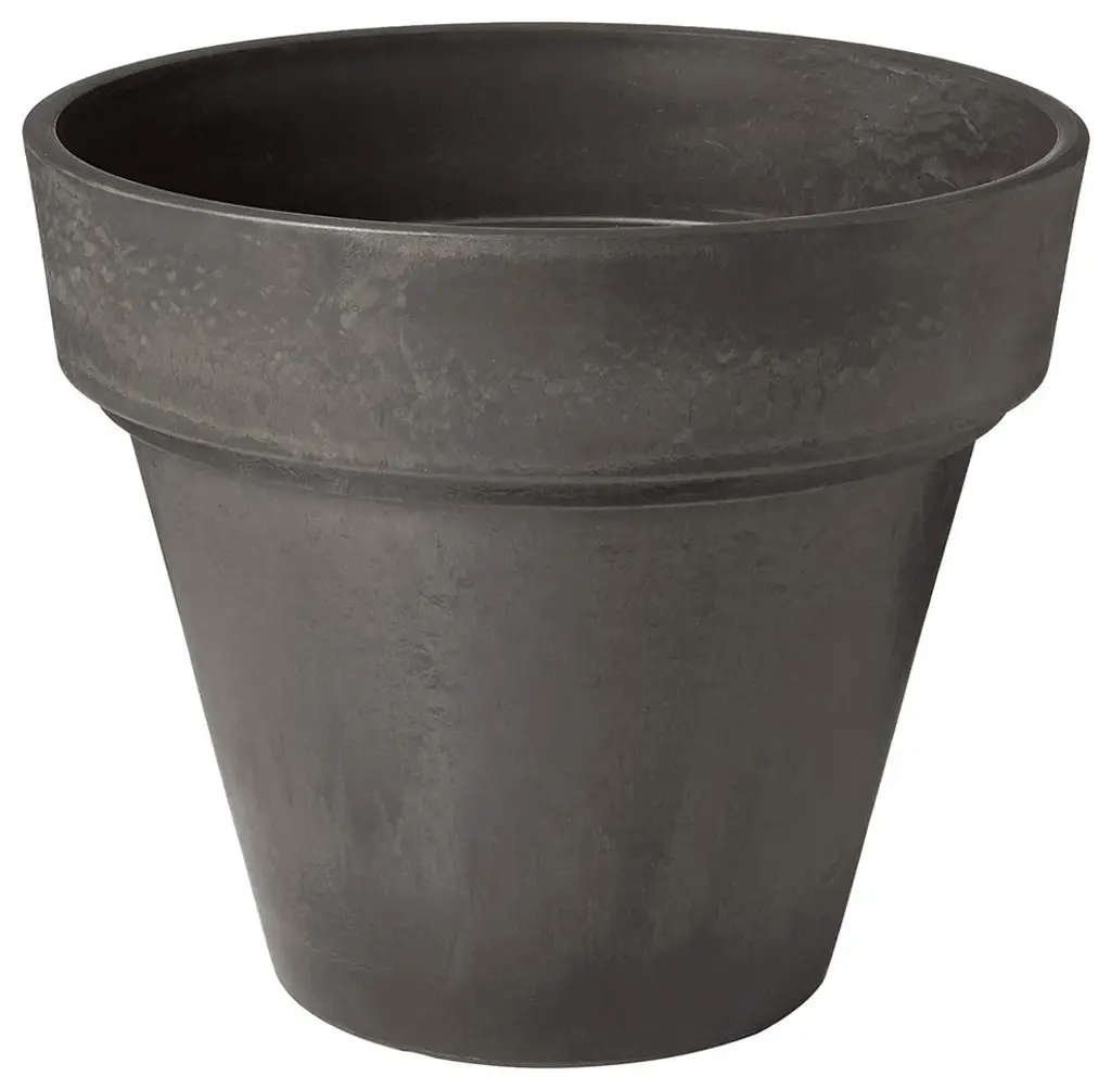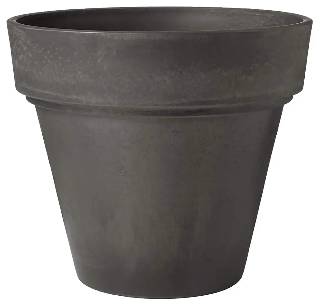 Showcase your favorite flowers and greenery in the ecofriendly Traditional Pot. Made from a mix of recycled polymer, stone powder, and wood dust, this charcoal gray pot is lightweight, weather-resistant, and durable. Its classic shape and solid color lends to its versatility.