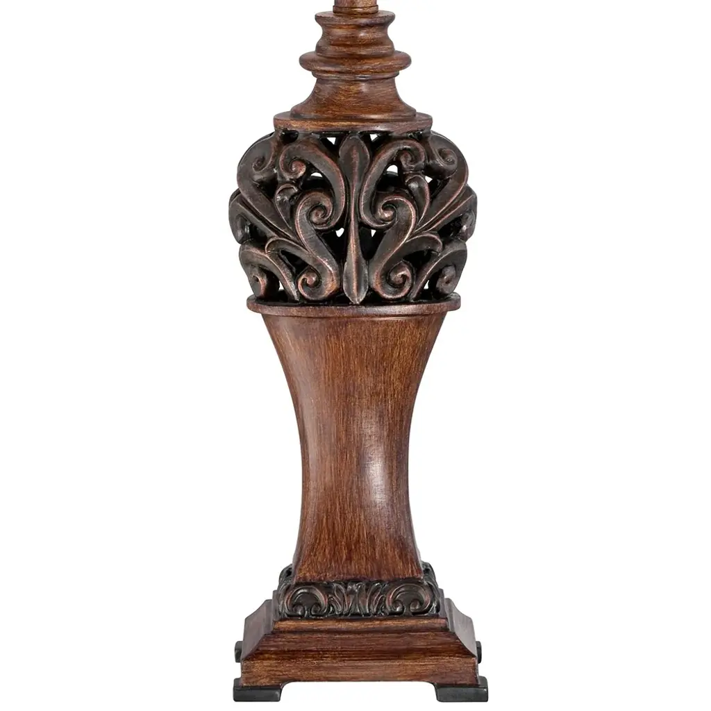 Traditional Table Lamps 30" Tall Set Of 2 Wood Bronze Carved Red Shade - 14" X 30" - 14" X 30" - Brown