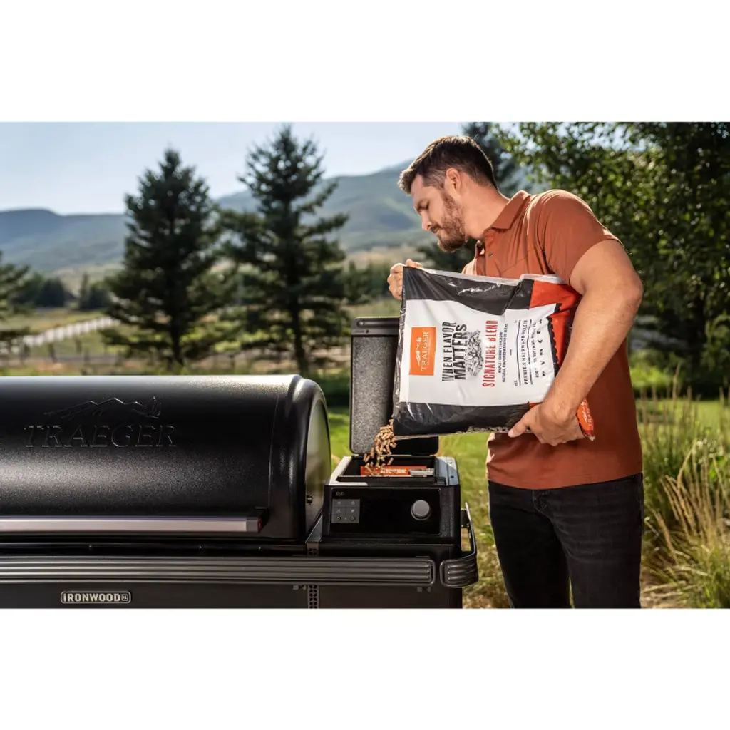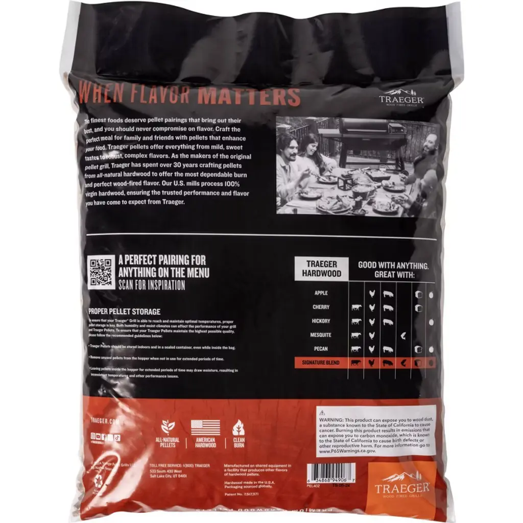 As the makers of the original pellet grill, Traeger has spent over 30 years crafting pellets from all-natural hardwood to offer the most dependable burn and perfect wood-fired flavor. Traeger’s premium wood pellets are made from 100% natural, BBQ quality hardwood. Our U.S. mills process 100% virgin hardwood, ensuring the trusted performance and flavor you have come to expect from Traeger. Traeger’s Signature Blend Hardwood Pellets feature the perfect blend of all-natural hardwoods to go with any food you cook, from beef to baked goods.