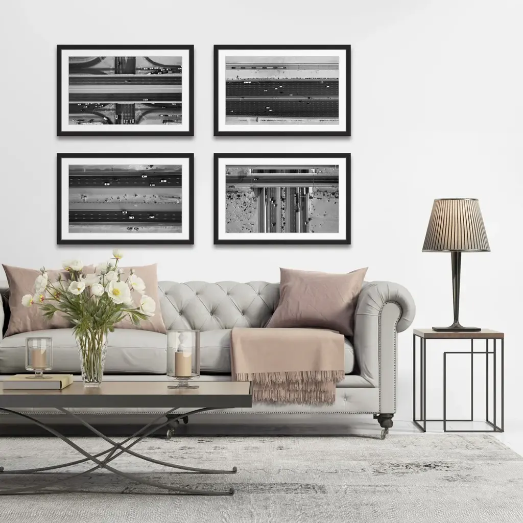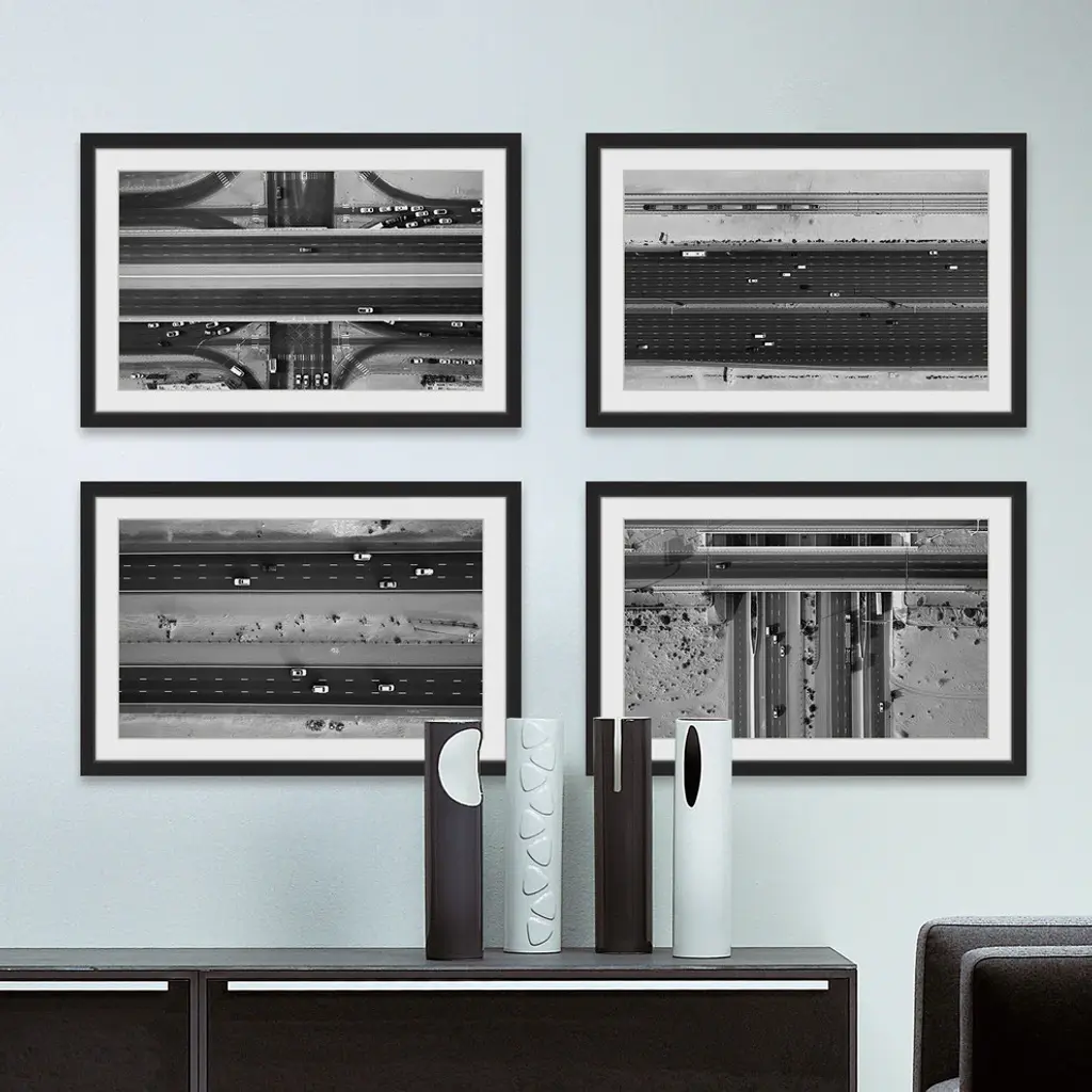- (4) panels of 24x16- Top quality Giclee print on high resolution Archive Paper- Professionally framed and mounted on acid free archive matte- High quality durable non-warping frame- Arrives ready to hang- Includes a certificate of authenticity- Made in the USA