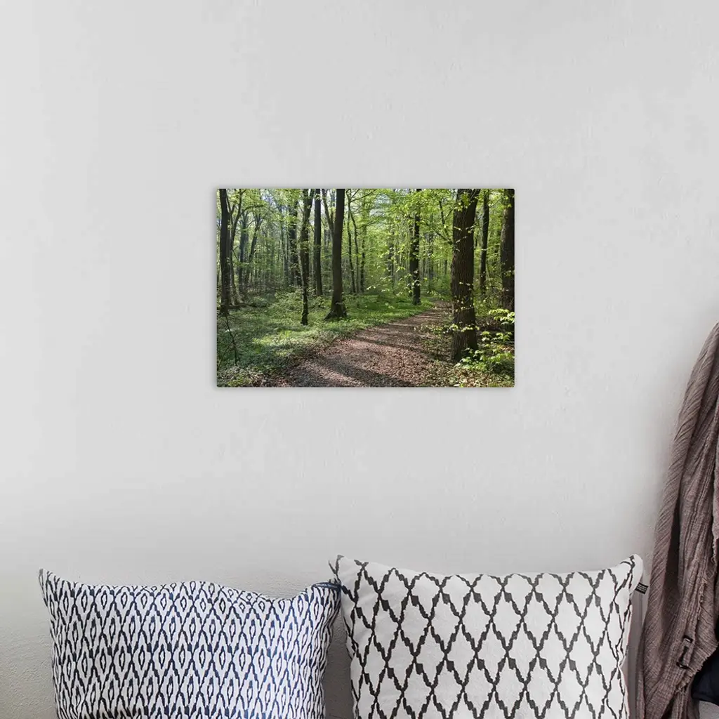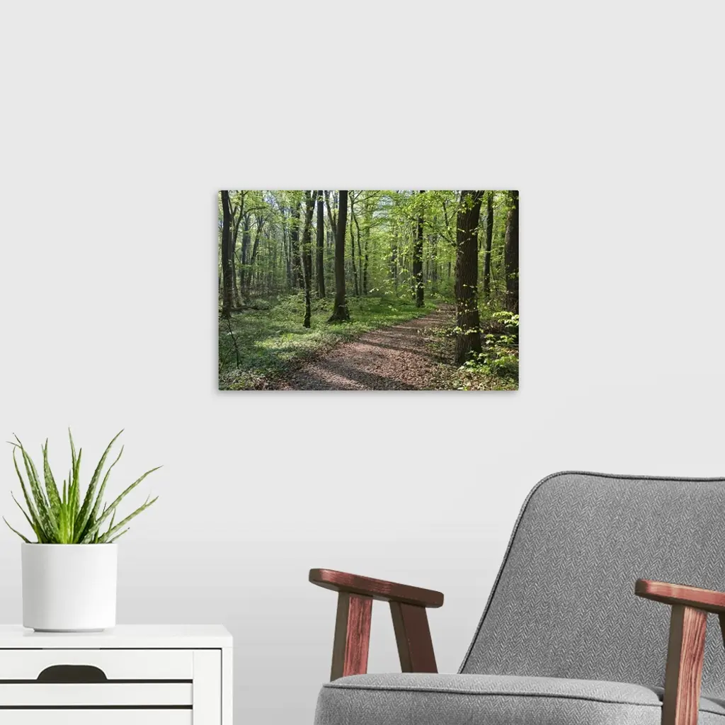 Trail Through Deciduous Forest In Spring, Upper Bavaria, Germany