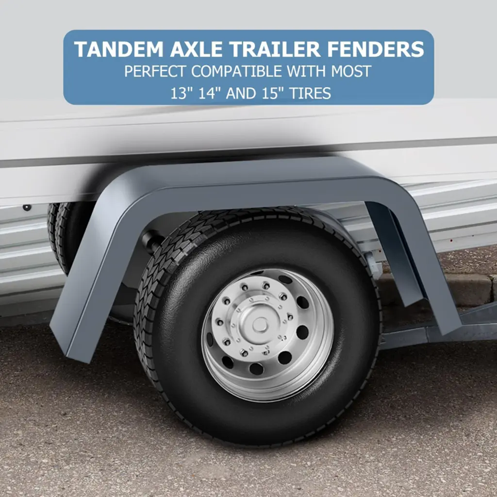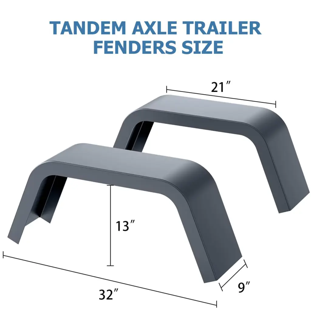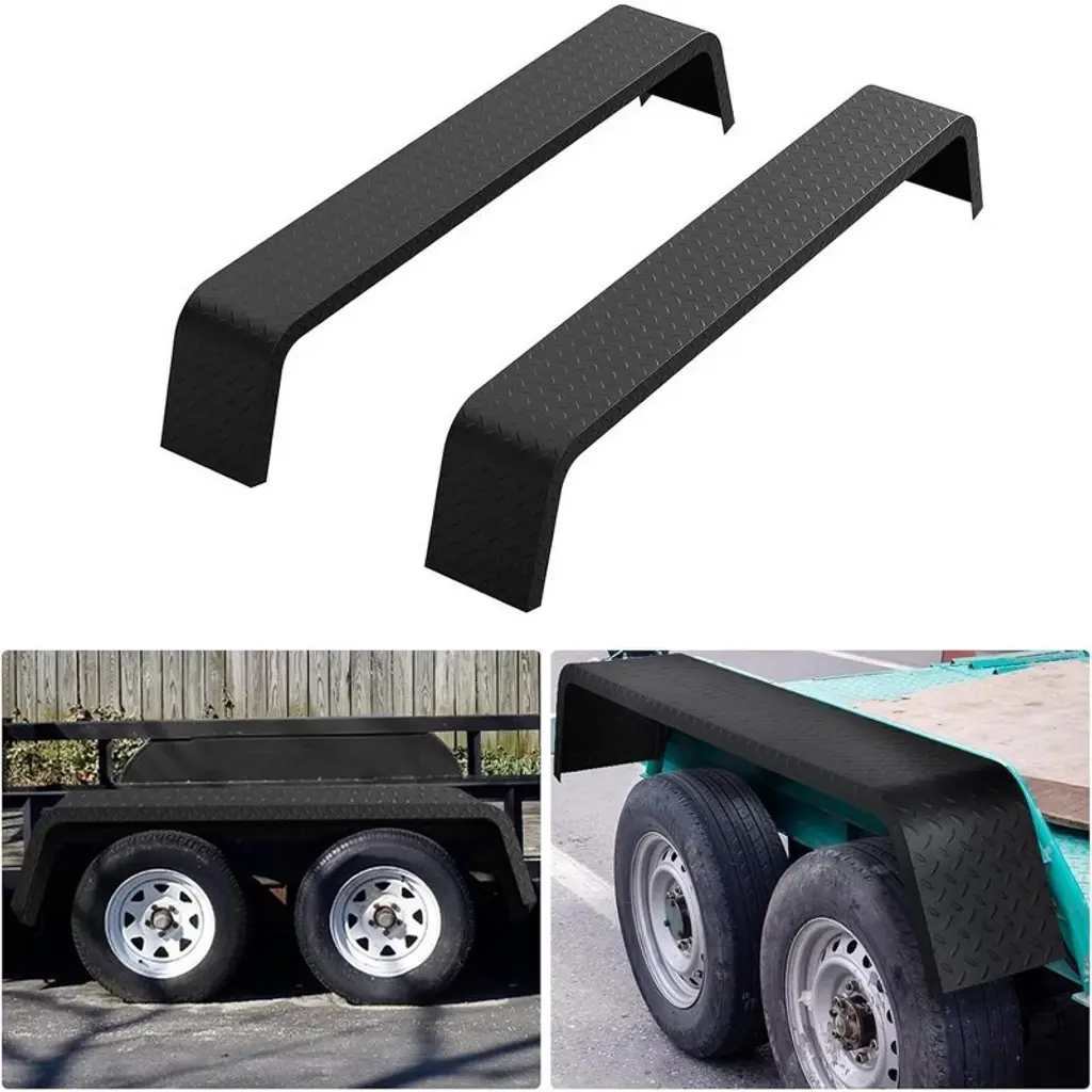 1.Precise Fit for 14"-16" Tires: Compatible with Single & Tandem Axle TrailersThese fenders are engineered to perfectly match the most common tire sizes for light-to-medium-duty trailers¡ª14 to 16 inches¡ªensuring a snug, gap-free fit that prevents rubbing against tire sidewalls or trailer frames. Their design works seamlessly with both single axle (one tire per side) and tandem axle (two tires per side) trailers, making them a versatile solution for a wide range of setups. Whether you¡¯re outfitting a compact utility trailer with 14-inch tires or a larger car hauler with 16-inch tires, these fenders provide full coverage to shield tires from road debris¡ªno awkward adjustments or ill-fitting gaps that compromise protection. 2.Heavy-Duty Steel Construction & Double-Sided Welding: Built for Rough RoadsCrafted from thick, durable steel, these fenders are tough enough to withstand the rigors of daily towing¡ªfrom gravel country roads to bumpy construction sites. What sets them apart is the double-sided welding process: every seam is welded on both sides, creating a stronger, more impact-resistant structure than single-welded fenders. This design prevents bending, denting, or cracking even when hit by flying rocks, loose gravel, or shifting cargo (e.g., lumber in a utility trailer or landscaping tools in a landscape trailer). Unlike flimsy aluminum or plastic alternatives, this steel build ensures long-lasting durability, protecting your trailer¡¯s tires and undercarriage for years. 3.2-Pack Double Fender Setup: Enhanced Coverage & Cargo ProtectionThis 2-pack includes two fenders, each designed with a double-sided profile that delivers superior coverage compared to basic single fenders. The extended design shields not just the tires, but also the trailer¡¯s undercarriage and cargo from road spray, mud, and debris. For example:When towing a cargo trailer with boxes or electronics, the fenders keep rain and mud from splashing onto your goods, preventing water damage. For landscape trailers hauling mulch, soil, or plants, they block dirt from being kicked up onto the trailer bed, reducing cleanup time after jobs.The double fender design also minimizes tire wear by keeping debris from getting trapped between tires (critical for tandem axles) and maintains a cleaner, more professional look for your trailer. 4.Versatile Use Across Trailer Types: Ideal for Every Hauling NeedThese fenders are designed to adapt to nearly any trailer application, making them a go-to for both personal and professional use:Car haulers: Protect the vehicle being towed (e.g., classic cars, trucks) from road debris that could scratch paint or damage body panels. Cargo trailers: Keep stored items dry and clean by blocking rain, mud, and gravel from entering the trailer bed. Landscape trailers: Withstand the wear of hauling heavy tools (lawnmowers, edgers), mulch, or soil, and prevent debris from staining or damaging equipment. Utility trailers: Handle general hauling tasks¡ªfrom moving furniture to transporting building materials¡ªwithout compromising on protection.This versatility eliminates the need to buy separate fenders for different trailers, saving you money and storage space. 5.Pre-Drilled Holes for Easy Installation: No Modifications NeededInstalling these fenders is quick and hassle-free, even for DIY beginners. Each fender comes with pre-drilled holes that align perfectly with standard trailer frame brackets and mounting points¡ªno measuring, drilling, or custom modifications required. Simply line up the holes with your trailer¡¯s frame, secure the fenders with bolts (not included), and you¡¯re ready to tow in minutes. The pre-drilled design ensures a secure, stable fit (no wobbling during travel) and saves you time compared to fenders that require on-site drilling. Whether you¡¯re replacing old, damaged fenders or upgrading a new trailer, this intuitive installation process gets the job done without frustration.