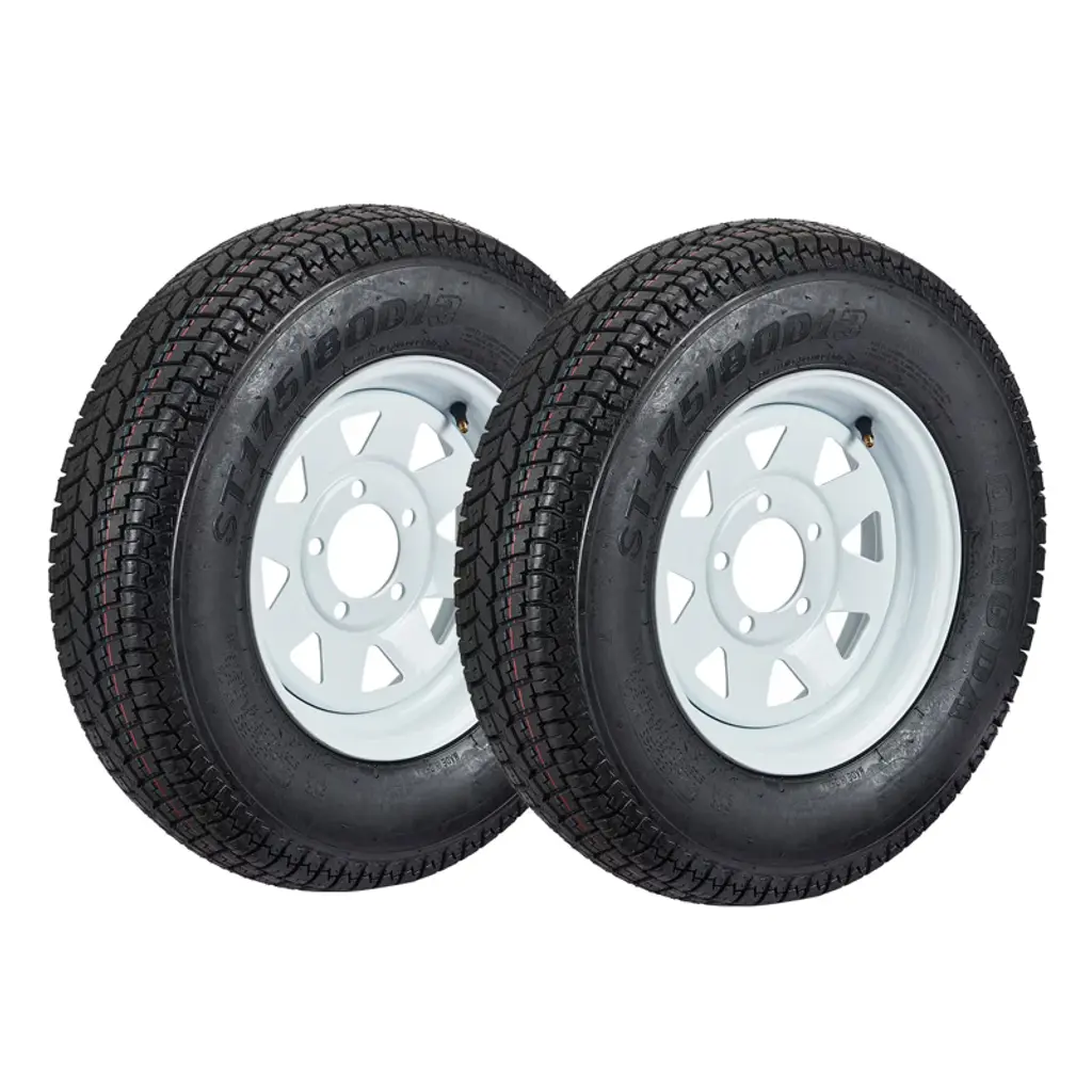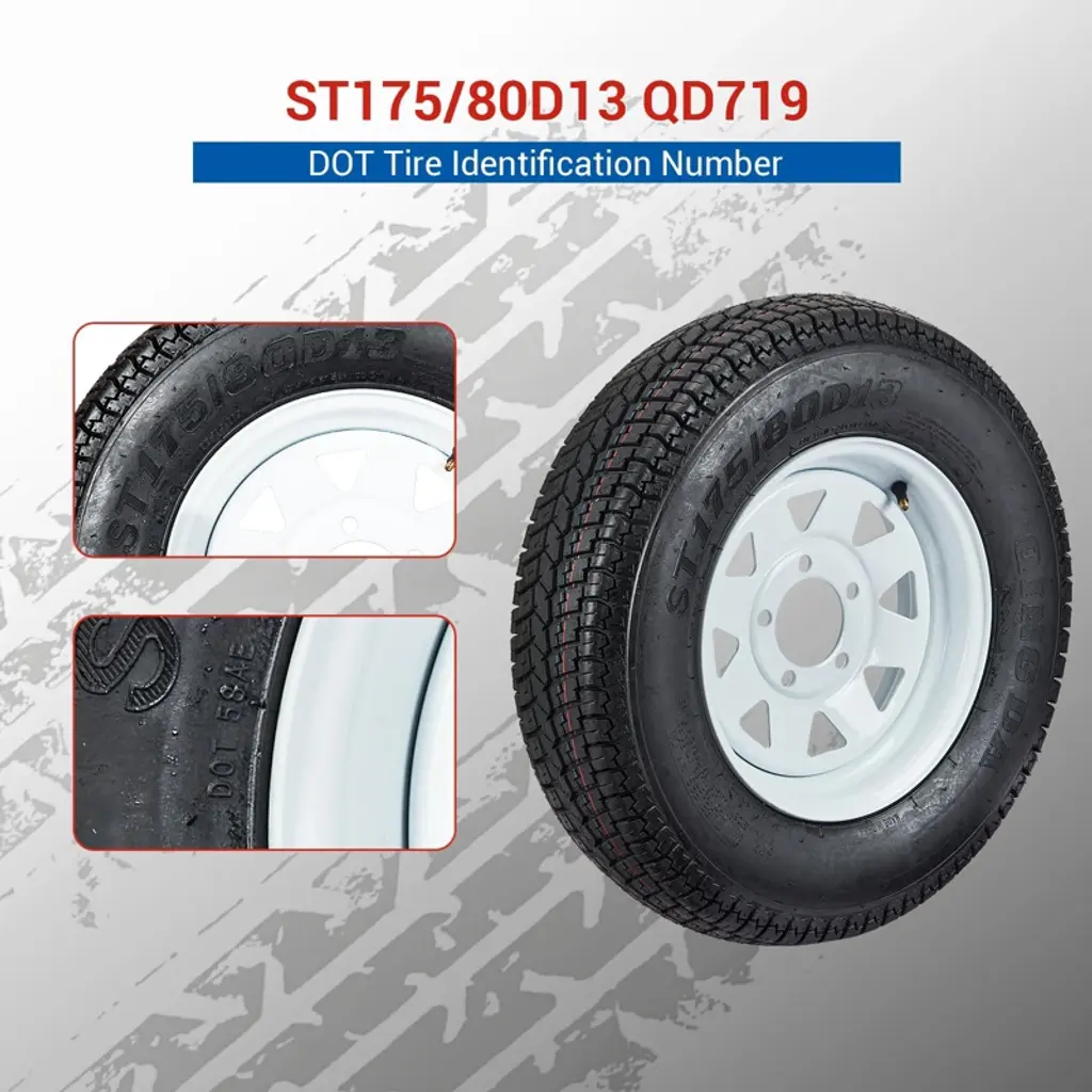 Trailer Tire On Rim, 13'' Trailer Tire - St175/80d13 Tire & Wheel Assembly (5 Lug 4.5''), Load Range C 6 Ply White Spoke Rim