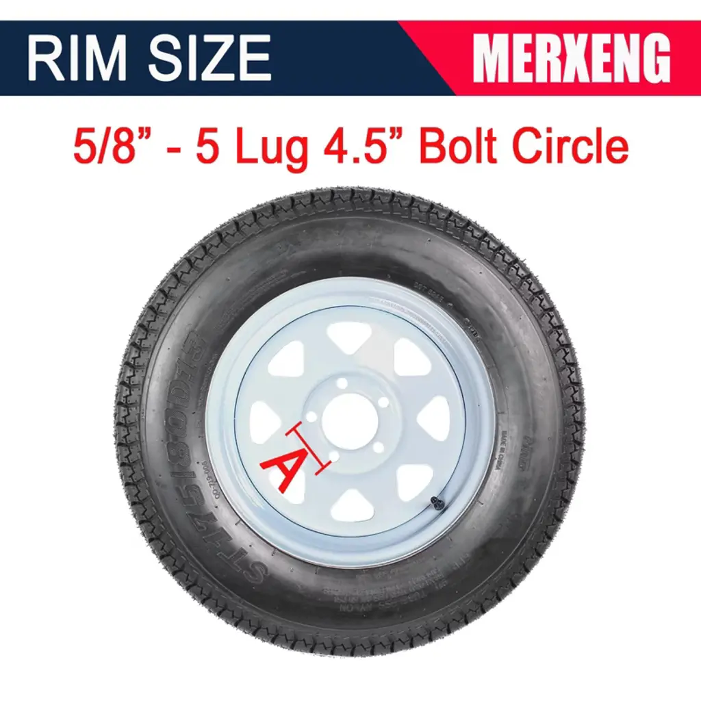 Trailer Tires Rims St175/80d13 175 80 13 Tire 5 Lug White Spoke Wheel Load Range C, 6 Ply, Set Of 2