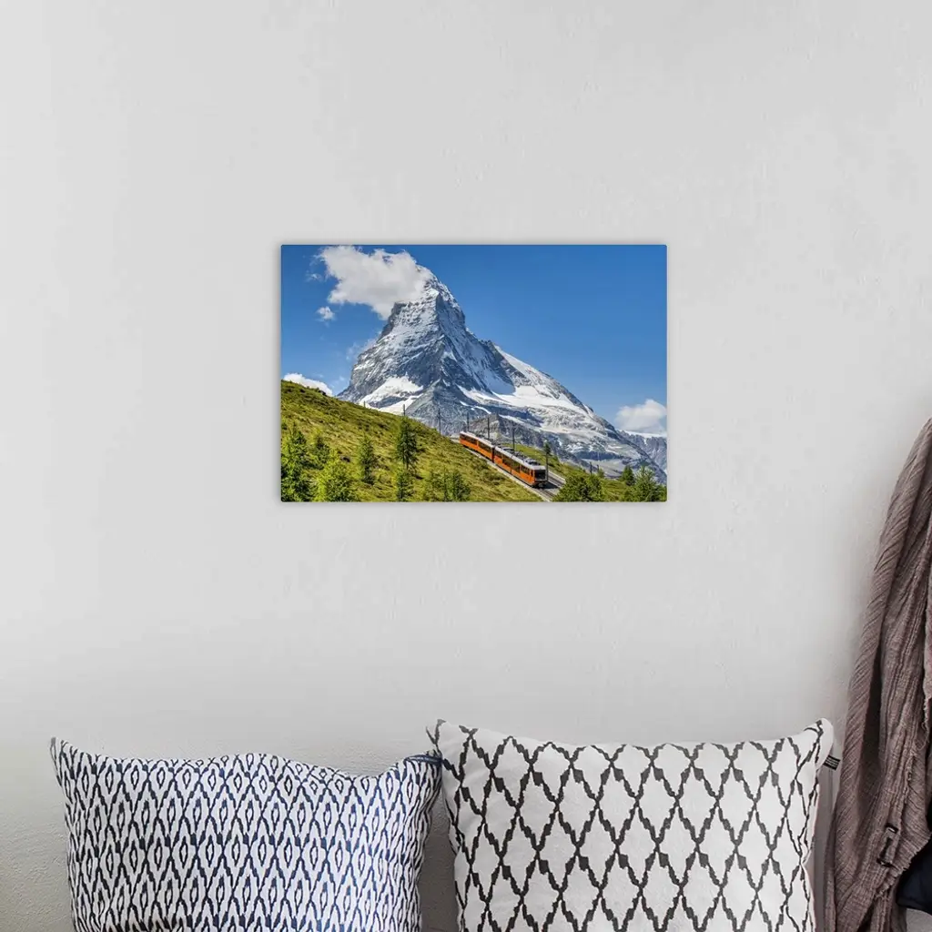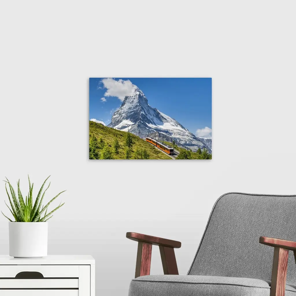 Train Along The Gornergrat Mountain With Matterhorn In The Foreground, Switzerland