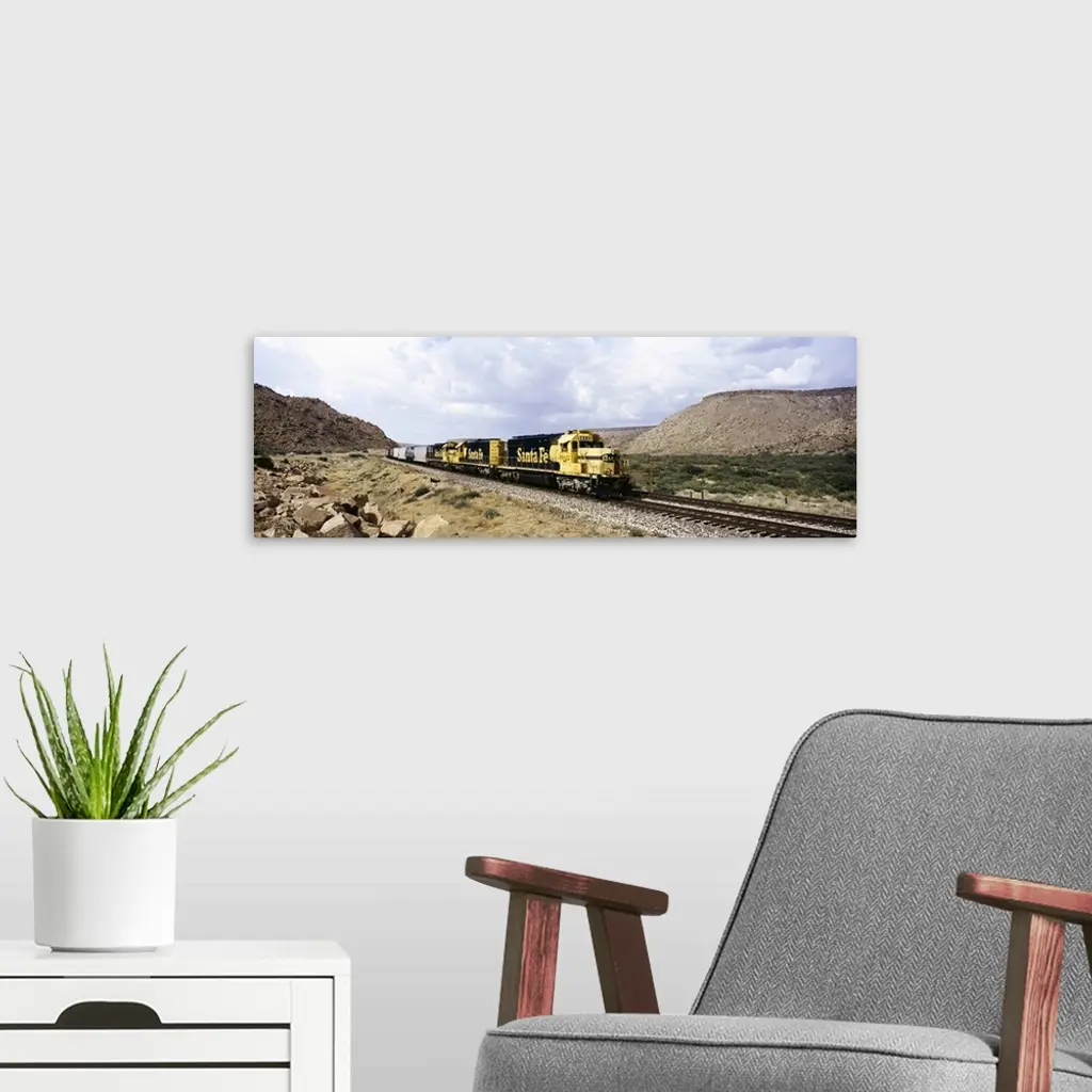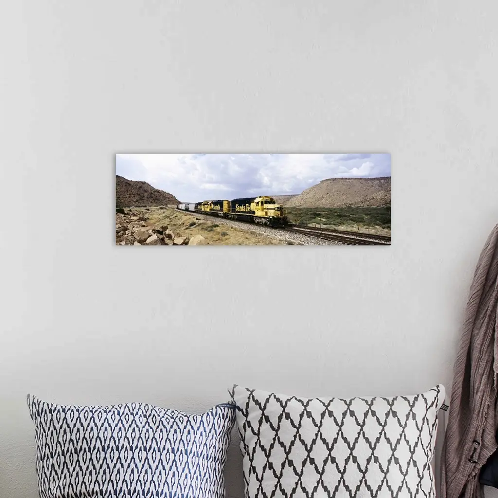 Train on a railroad track, Santa Fe Railroad, Route 66, Valentine, Arizona wall art for home and office decor. Discover canvas art prints, photos, mural, big canvas art and framed wall art in GreatBigCanvas.com's varied collections.