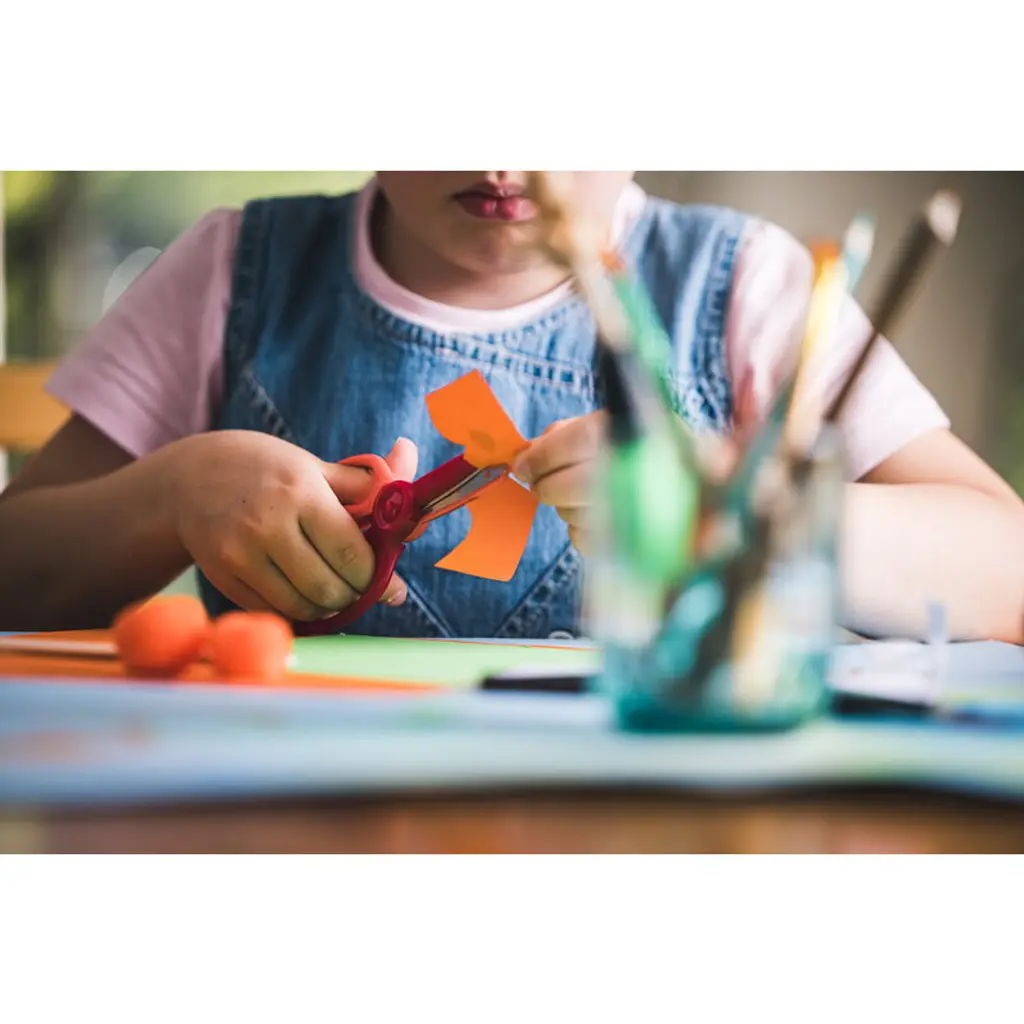 The Fiskars training scissors are designed for the littlest of crafters – they allow kids to practice using scissors and let their imagination soar. The training scissors’ plastic-covered, blunt-tip blades make using the scissors safe, while the wide, symmetrical handles are easy to grip no matter how the kid holds the scissors. The handle also features a nifty training lever that opens the blades automatically after each cut, allowing the child to focus on practicing closing the blades and cutting. When this has been mastered, the lever can be flipped up to begin training traditional cutting. The training scissors are designed for kids ages three and up, and they are suitable for both right- and left-handed crafters.