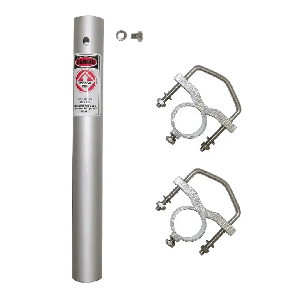 The Tram® CB base station antenna is constructed out of heavy-duty fiberglass and is an omnidirectional antenna. It stands 18 ft. tall for superior transmission and comes in 3 sections for ease of installation. It comes with a UHF female SO-239 connector and a 50-ohm impedance designed to carry higher powers. The wavelength measures 1/2 wave over 1/4 wave. The antenna is packaged with a mounting bracket and stainless steel hardware. Cable is not included.