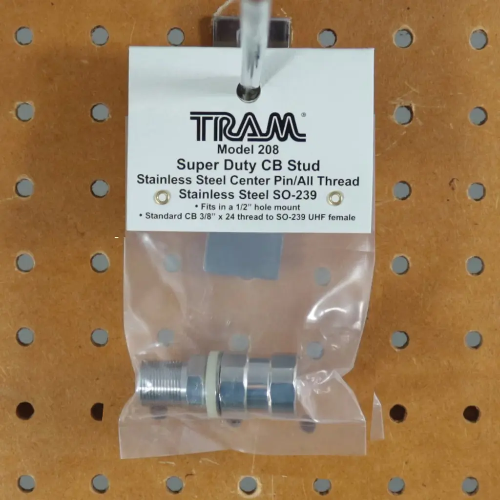 Increase the quality of the connection between your CB and its antenna with the BigCat Heavy-Duty CB Stud for 1/2-Inch Hole from Tram. With its chrome-plated oversized brass nut, it's durable enough to withstand high winds and other dangers. It connects seamlessly to any CB with a 3/8 in. x 24 CB thread for easy installation.