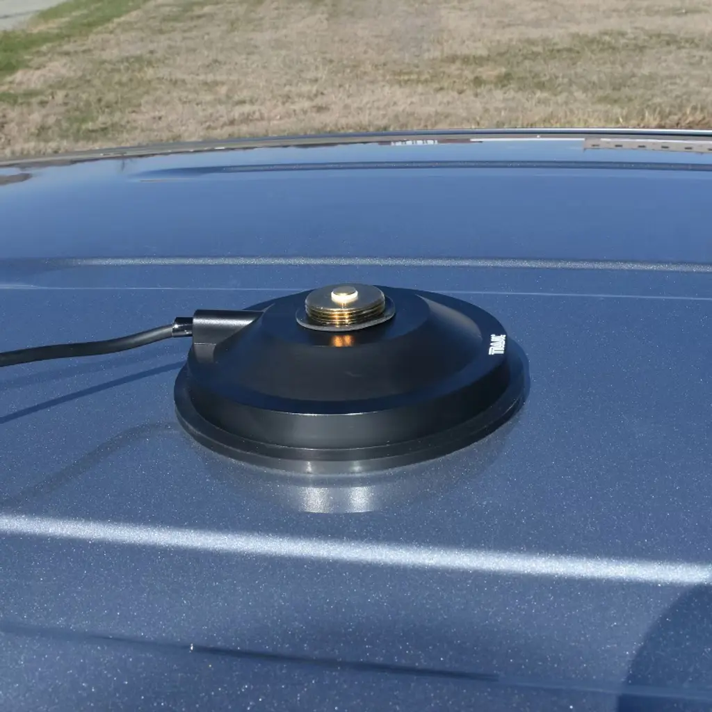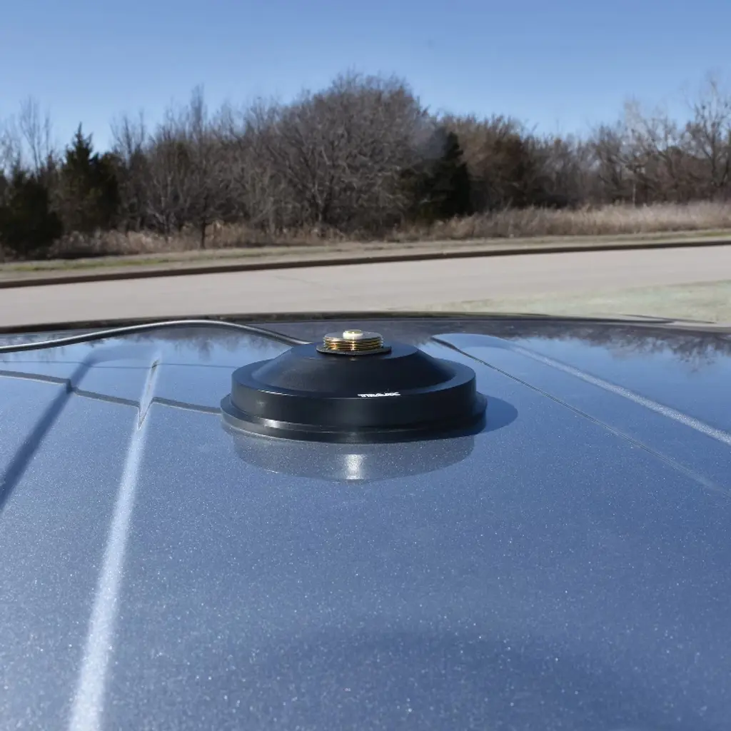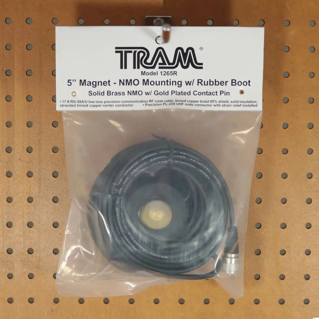 The Tram® NMO soft rubber boot mount protects the vehicle's surface from being scratched. This NMO 5-in. magnet mount comes with a 17-ft. low-loss RG58 A/U coax cable, tinned copper braid 95%, solid insulation and stranded tinned copper center conductor for maximum performance. The connector is installed and is a male PL-259 connector. Black magnet housing gives the mount a nice sleek appearance. Stay connected with Tram®.