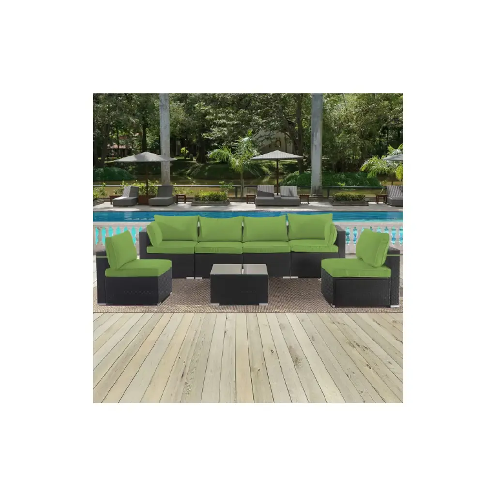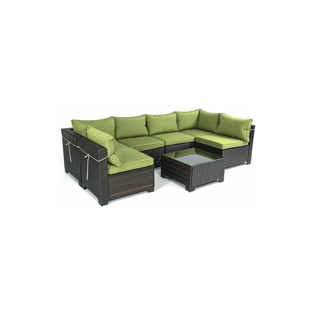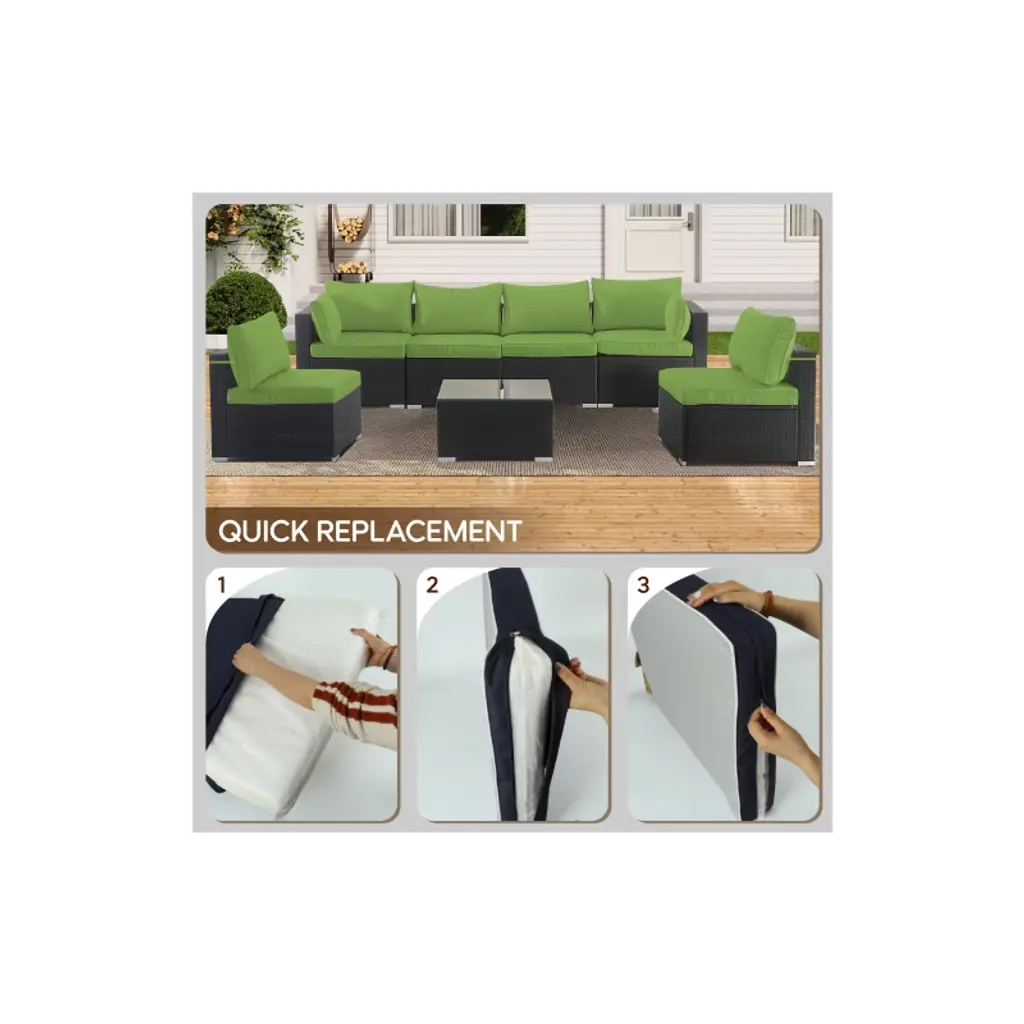 Tramull 26.6 In 6-seaters Wicker Rattan Sectional Sofa,14pack Cushion Slipcovers Set Seat And Back,green