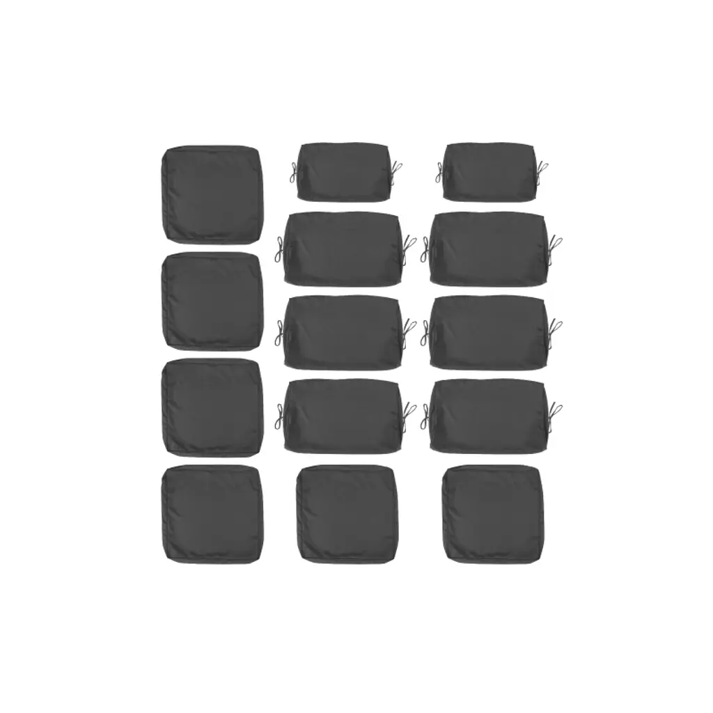 14pcs cushion cover Includes 6Pcs seat covers 6 backrest coversand 2Pcs small armrest covers ,perfectly fitting for 6-seater wicker rattan patio conversation set. COVERS ONLY and please measure the seat cushion size carefully before placing an order.