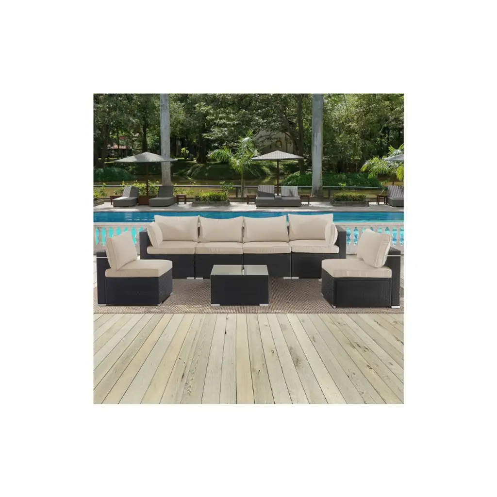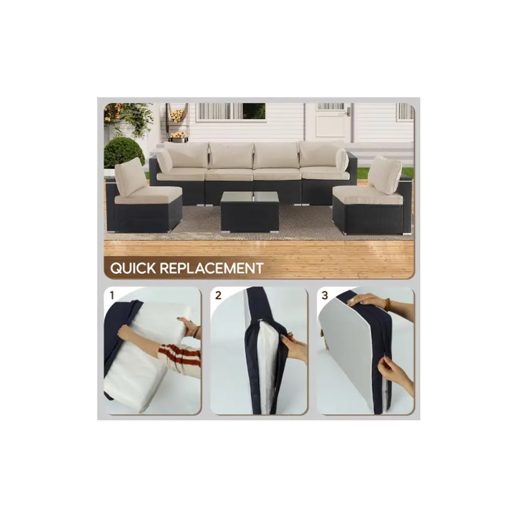 Tramull 26.6 In 6-seaters Wicker Rattan Sectional Sofa,14pack Cushion Slipcovers Set Seat And Back,khaki