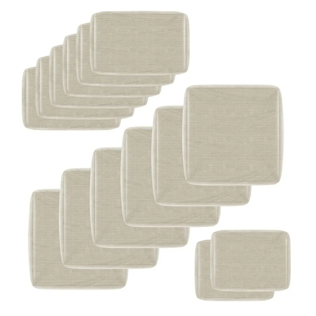 14pcs cushion cover Includes 6Pcs seat covers 6 backrest coversand 2Pcs small armrest covers ,perfectly fitting for 6-seater wicker rattan patio conversation set. COVERS ONLY and please measure the seat cushion size carefully before placing an order.