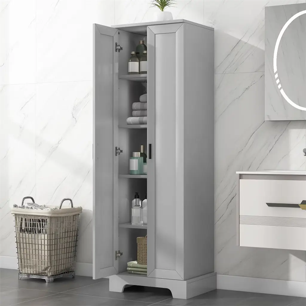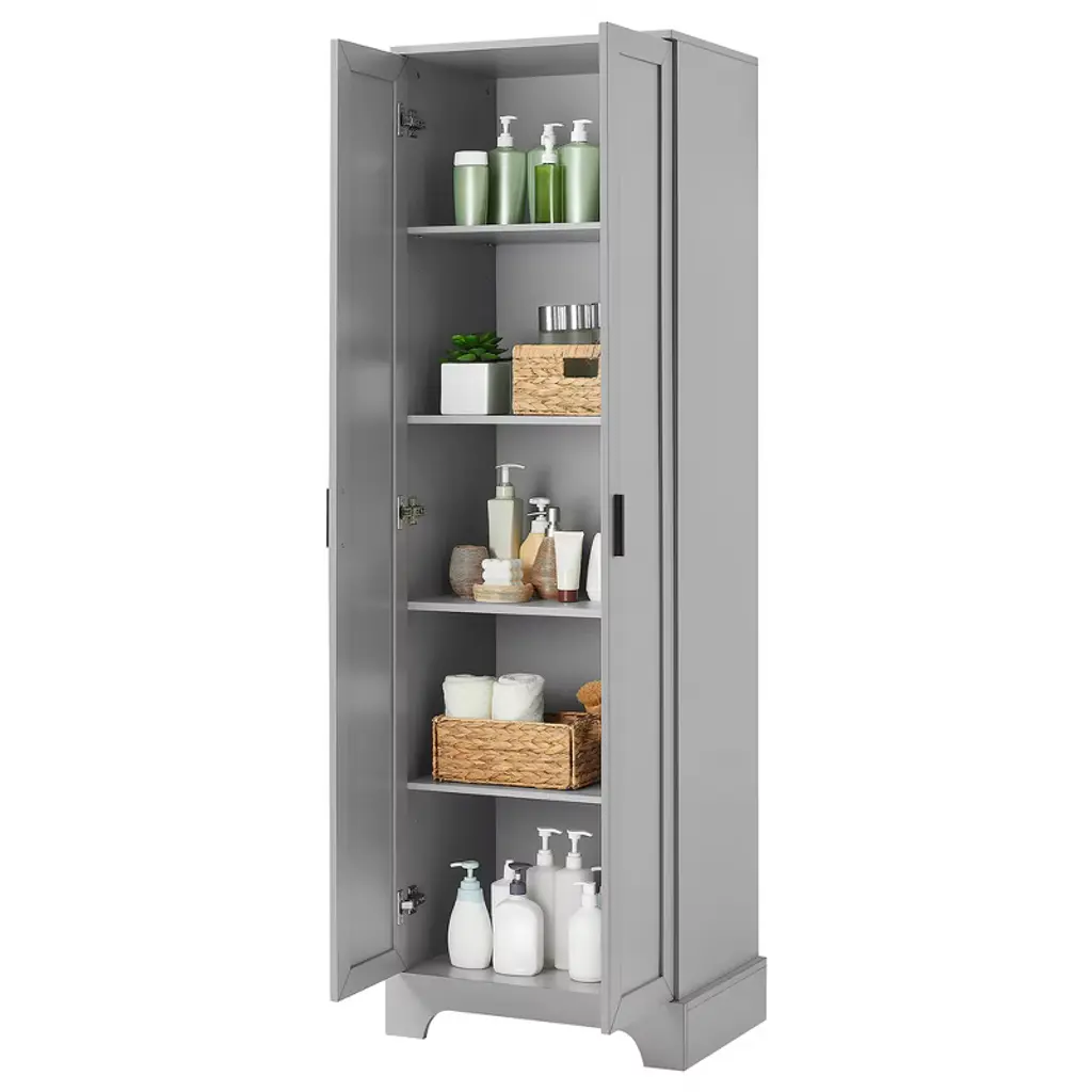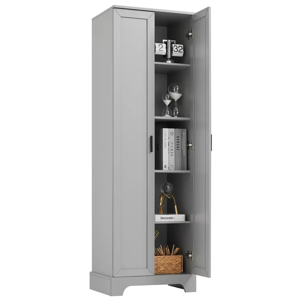 Tramull Gray 2-door Storage Cabinet With Adjustable Shelves For Bathroom, Office & Home, Easy Assembly