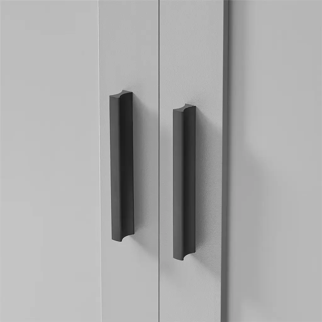 This sturdy storage cabinet features high-quality MDF construction with a waterproof, smooth finish for easy cleaning. The durable black metal handles and silent-closing stainless steel hinges ensure quiet operation and long-lasting use. Its robust design provides reliable storage while maintaining an elegant appearance in any room setting.
