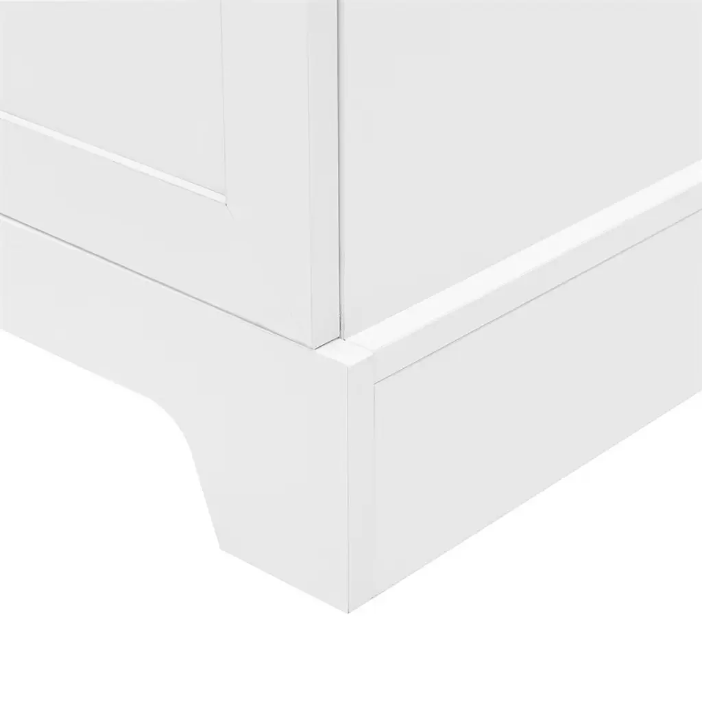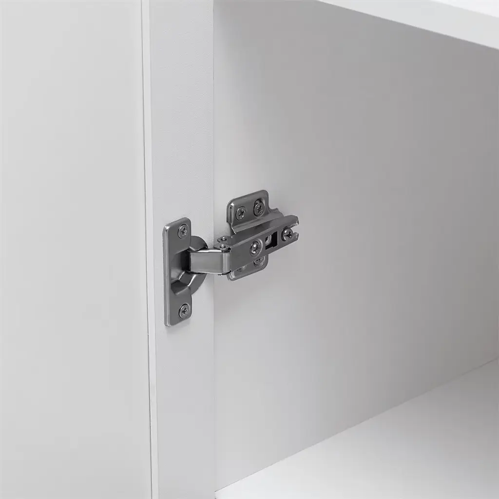 This sturdy storage cabinet features high-quality MDF construction with a waterproof, smooth finish for easy cleaning. The durable black metal handles and silent-closing stainless steel hinges ensure quiet operation and long-lasting use. Its robust design provides reliable storage while maintaining an elegant appearance in any room setting.