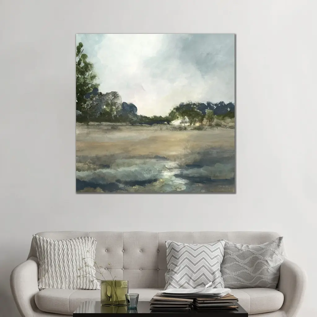 Get lost in a lush forest without ever leaving home! Characterized by hand embellished canvas in a black floater frame, this Tranquil Forest Wall Art brings a touch of nature to your walls.
