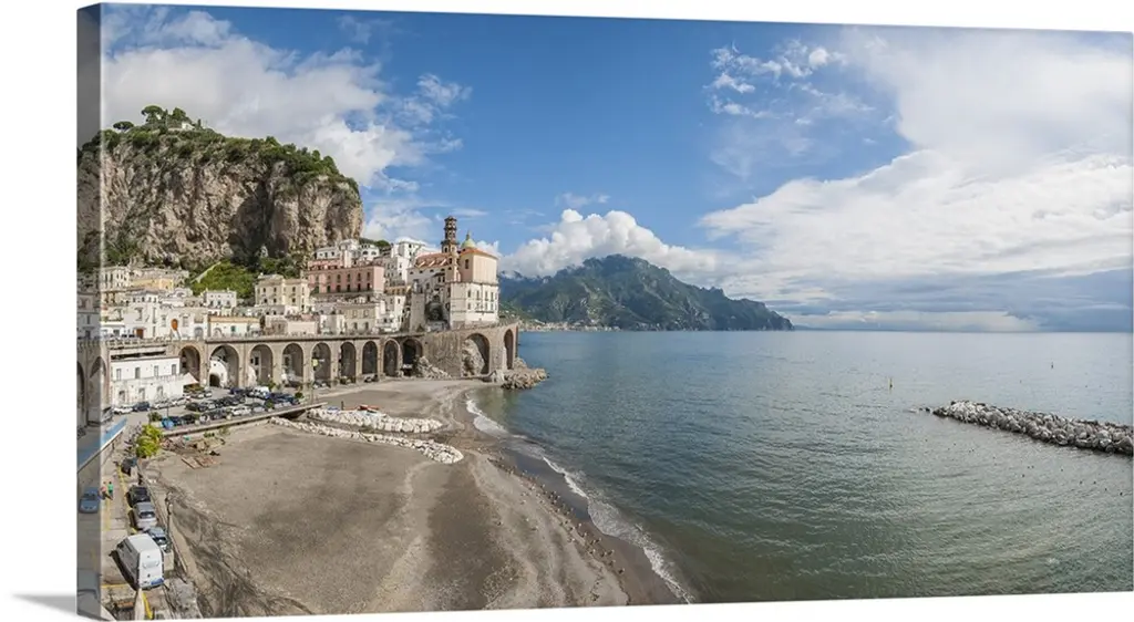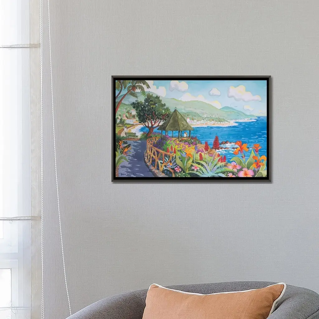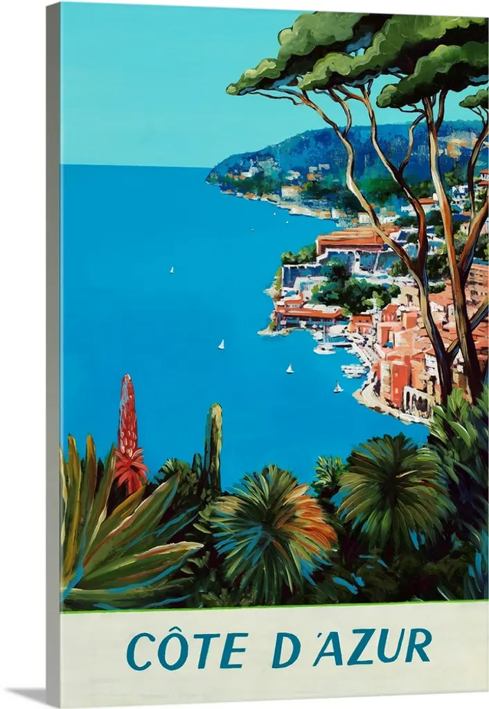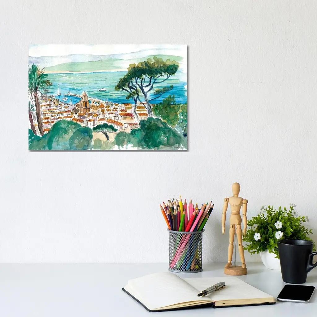 From the village above, the harbor piers reach out to the sea to welcome visitors and bid bon voyage to those leaving. This wall art is a fine art giclee on canvas and gallery wrapped.