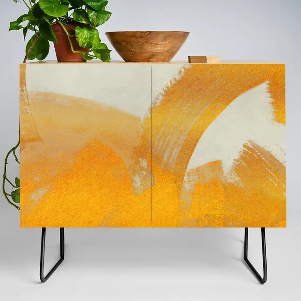 35.5" x 17.5" x 30" (H) including legsSteel legs available in gold or blackInterior shelf is adjustableWipe clean with damp clothAssembly requiredEvery order is made just for youTips for Assembling Your CredenzaHere’s what you’ll need beforehand (not included with your purchase): a Phillips head screwdriver and a partner. A ratchet and 7/16" socket is helpful but not required since we include a wrench.Read the instructions. We include a detailed, step-by-step guide in your box. Make sure to follow the instructions so your credenza looks perfect.SHIPPING: Items are made to order and typically ship within 3-4 business days. Click here for more information about delivery options.Furniture sales are final. Click here for more information on returns.