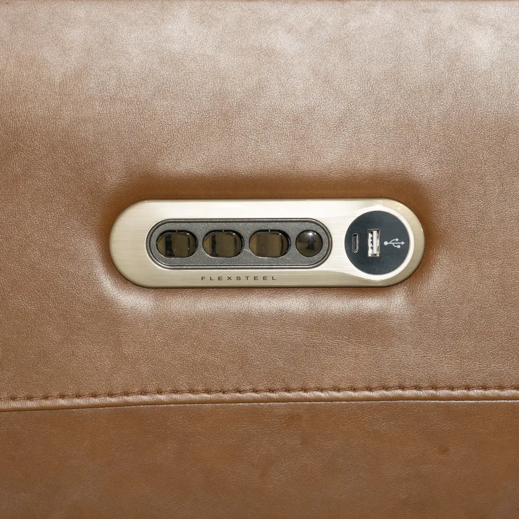 Bring your living room to the next level with this sleek, innovative power gliding recliner. This transitional style sports sleek curves upholstered in your choice of luxurious top-grain leather. A step above typical reclining, these gliding seats provide a smooth, versatile, and unique experience. Customize your comfort with a power control that adjusts recline, headrest, and lumbar support, and includes USB ports to keep your devices charged and within reach. Kick back in this recliner, the future of relaxation.