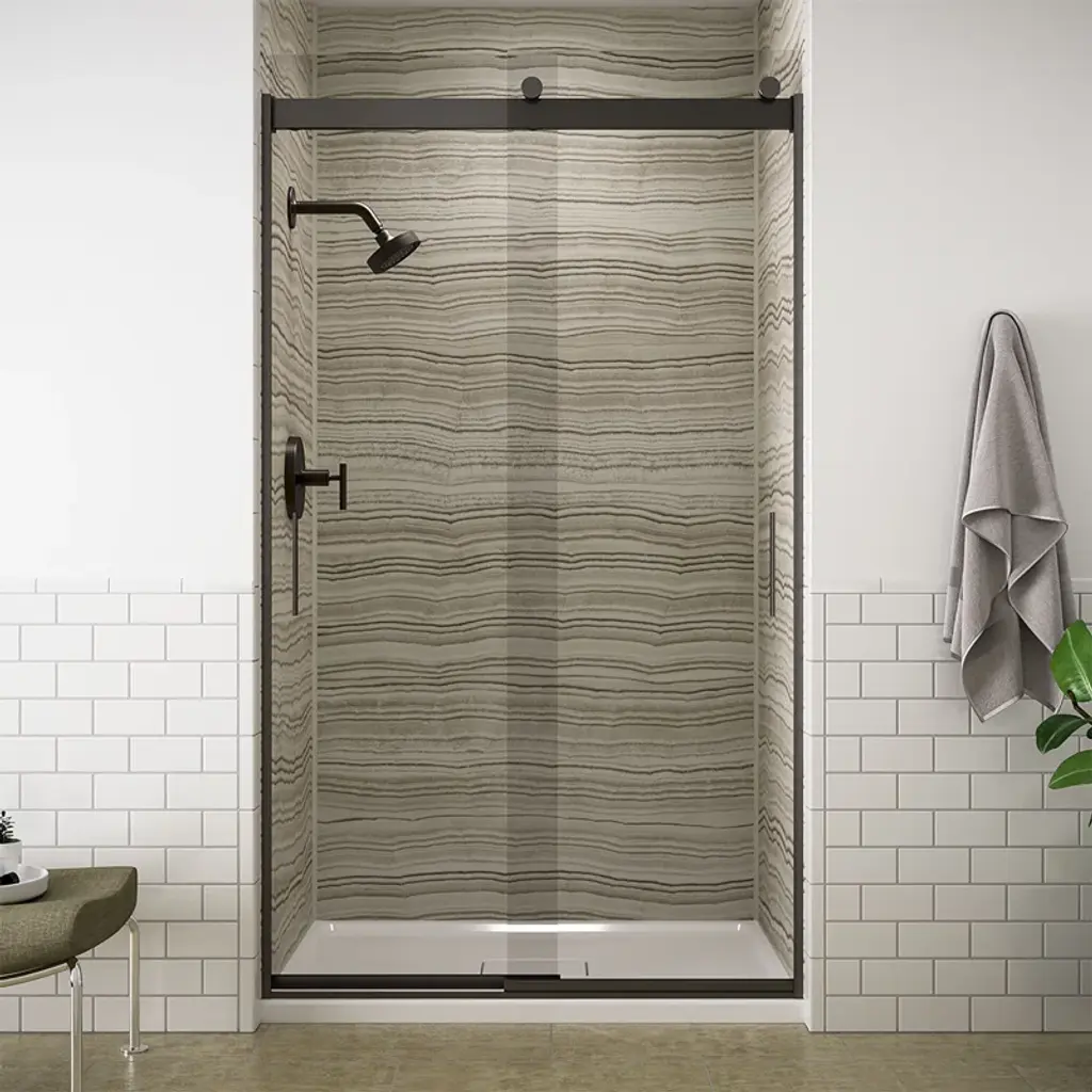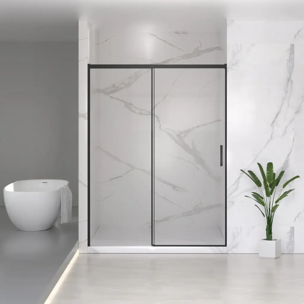 This Transolid Elizabeth shower door has a frameless swing shower door with a fixed panel that is every bit as elegant as it is functional. TruMotion and additional height sets this Elizabeth door apart from its competition. This unique TruMotion slow closing hinge features an adjustable 3 position timing, enabling the user to adjust the closure from either slow or fast paced closing without having to worry about a slamming door. The side wall profile on the stationary panel allows 1/2-in. out-of-plumb adjustment, making it possible for uneven walls to still hold a beautiful shower door. Transolid exclusive Nano ClearCoat water repellant and stain resistant glass coating adds superior protection from stains and is nearly maintenance-free. With clean lines, modern accents and an upscale look, the Elizabeth collection adds timeless style to any bathroom space.Transolid EHTB60307610C-T Features:Transolid EHTB60307610C-T Specifications: