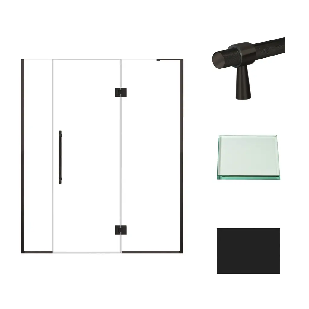 This Transolid Elizabeth shower door has a frameless swing shower door with a fixed panel that is every bit as elegant as it is functional. TruMotion and additional height set this Elizabeth door apart from its competition. This unique TruMotion slow closing hinge features an adjustable 3 position timing, enabling the user to adjust the closure from either slow or fast paced closing without having to worry about a slamming door. The side wall profiles allow 1/2" out-of-plumb adjustment on either side, making it possible for uneven walls to still hold a beautiful shower door. Transolid exclusive Nano ClearCoat water repellant and stain resistant glass coating adds superior protection from stains and is nearly maintenance-free. With clean lines, modern accents and an upscale look, the Elizabeth collection adds timeless style to any bathroom space.Transolid EHTF65297610C-BK Features:Transolid EHTF65297610C-BK Specifications: