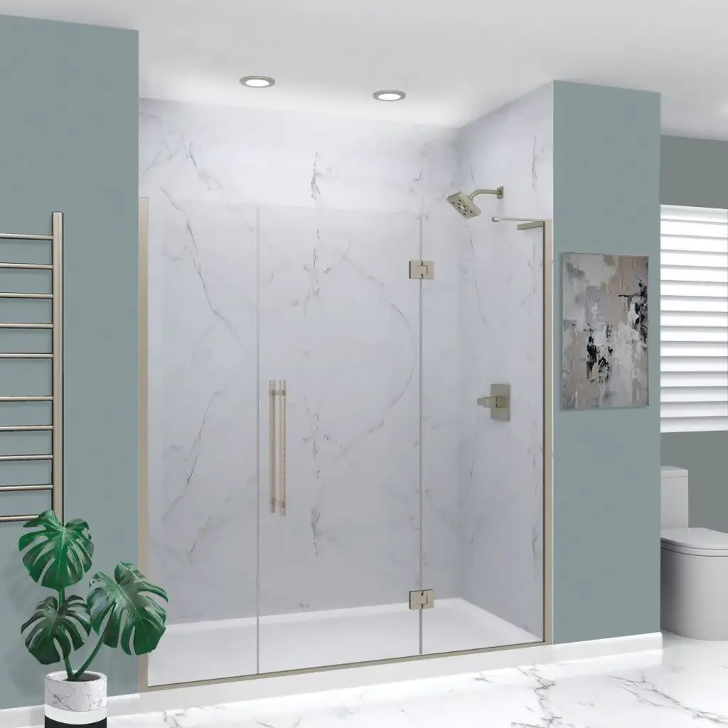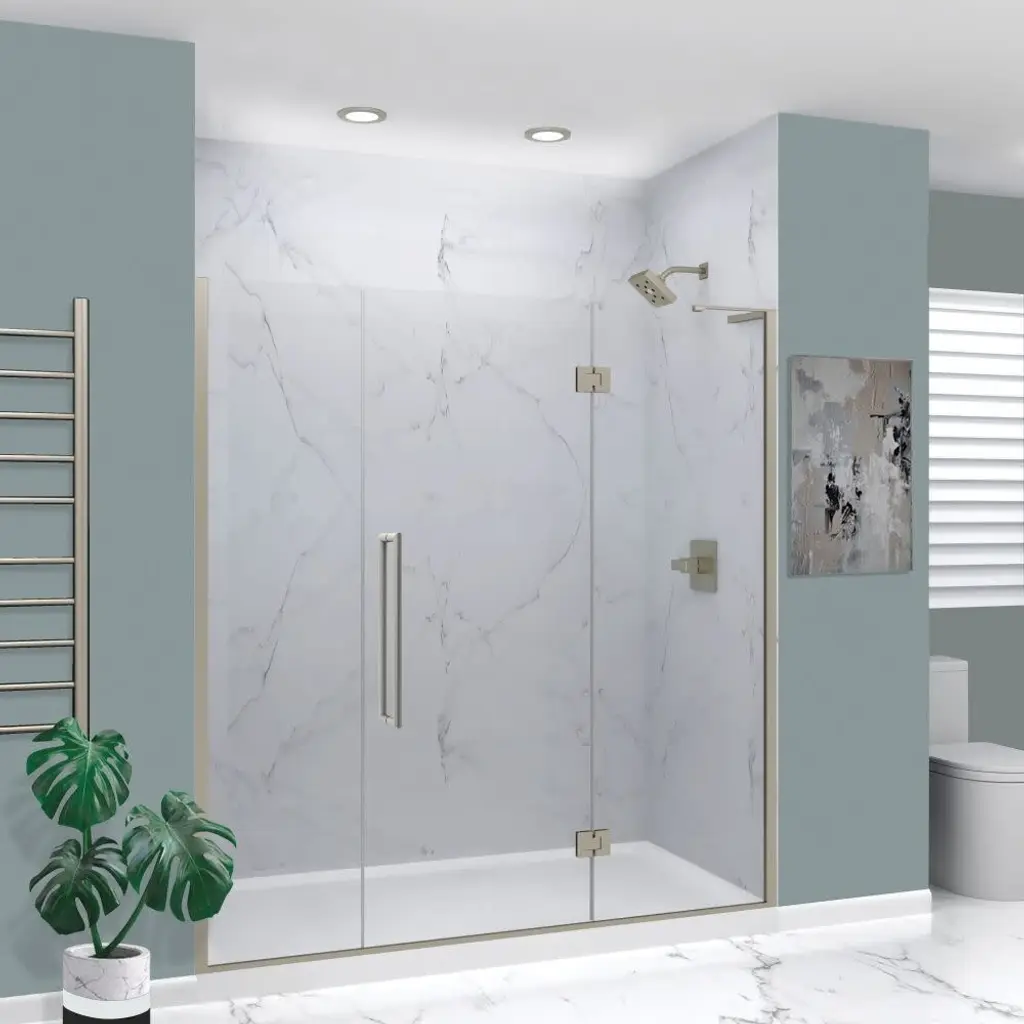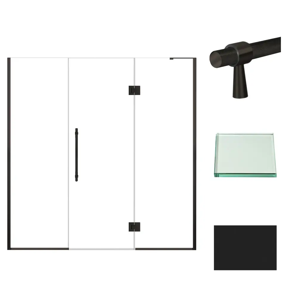 This Transolid Elizabeth shower door has a frameless swing shower door with a fixed panel that is every bit as elegant as it is functional. TruMotion and additional height set this Elizabeth door apart from its competition. This unique TruMotion slow closing hinge features an adjustable 3 position timing, enabling the user to adjust the closure from either slow or fast paced closing without having to worry about a slamming door. The side wall profiles allow 1/2" out-of-plumb adjustment on either side, making it possible for uneven walls to still hold a beautiful shower door. Transolid exclusive Nano ClearCoat water repellant and stain resistant glass coating adds superior protection from stains and is nearly maintenance-free. With clean lines, modern accents and an upscale look, the Elizabeth collection adds timeless style to any bathroom space.Transolid EHTF72247610C-BK Features:Transolid EHTF72247610C-BK Specifications: