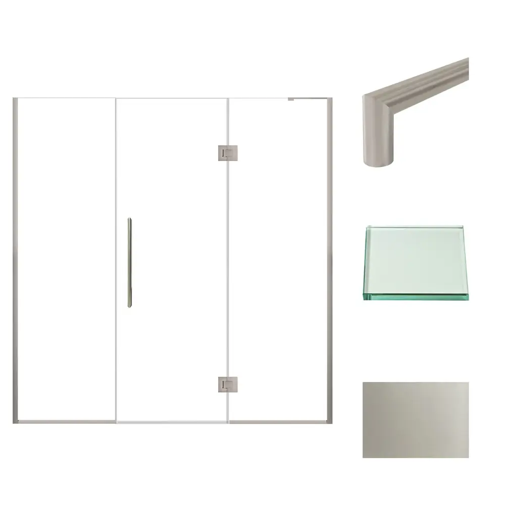 This Transolid Elizabeth shower door has a frameless swing shower door with a fixed panel that is every bit as elegant as it is functional. TruMotion and additional height set this Elizabeth door apart from its competition. This unique TruMotion slow closing hinge features an adjustable 3 position timing, enabling the user to adjust the closure from either slow or fast paced closing without having to worry about a slamming door. The side wall profiles allow 1/2" out-of-plumb adjustment on either side, making it possible for uneven walls to still hold a beautiful shower door. Transolid exclusive Nano ClearCoat water repellant and stain resistant glass coating adds superior protection from stains and is nearly maintenance-free. With clean lines, modern accents and an upscale look, the Elizabeth collection adds timeless style to any bathroom space.Transolid EHTF72247610C-T Features:Transolid EHTF72247610C-T Specifications: