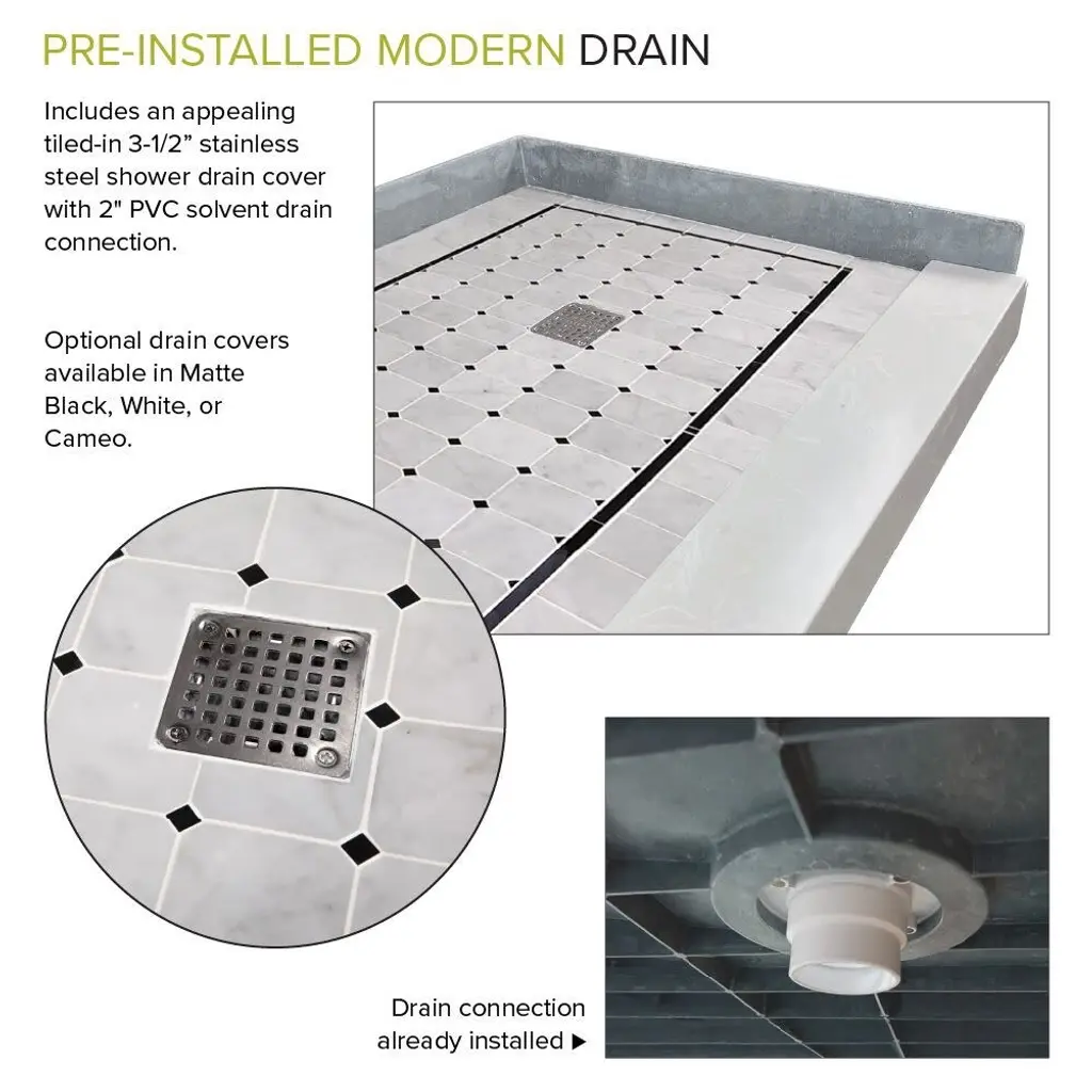 Transolid Fpt6036l 60" X 36-1/4" Rectangular Shower Base With Single - Off-White Hexagon