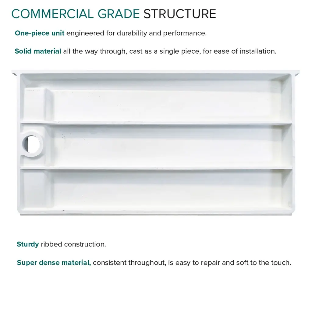 Introducing Transolid's commercial-grade shower base, engineered for durability and performance. Featuring a heavy-duty stainless steel trench drain cover, this base is built to withstand high-traffic environments with ease. The finely textured slip-resistant surface provides added safety, while the solid surface material offers density and consistency throughout, making it easy to repair. It is cast as a single piece, ensuring a soft-to-the-touch surface with a gentle finish.Transolid FSC6032R Features:Transolid FSC6032R Specifications: