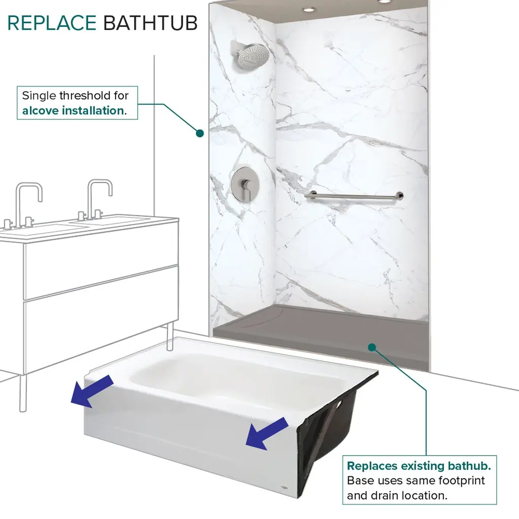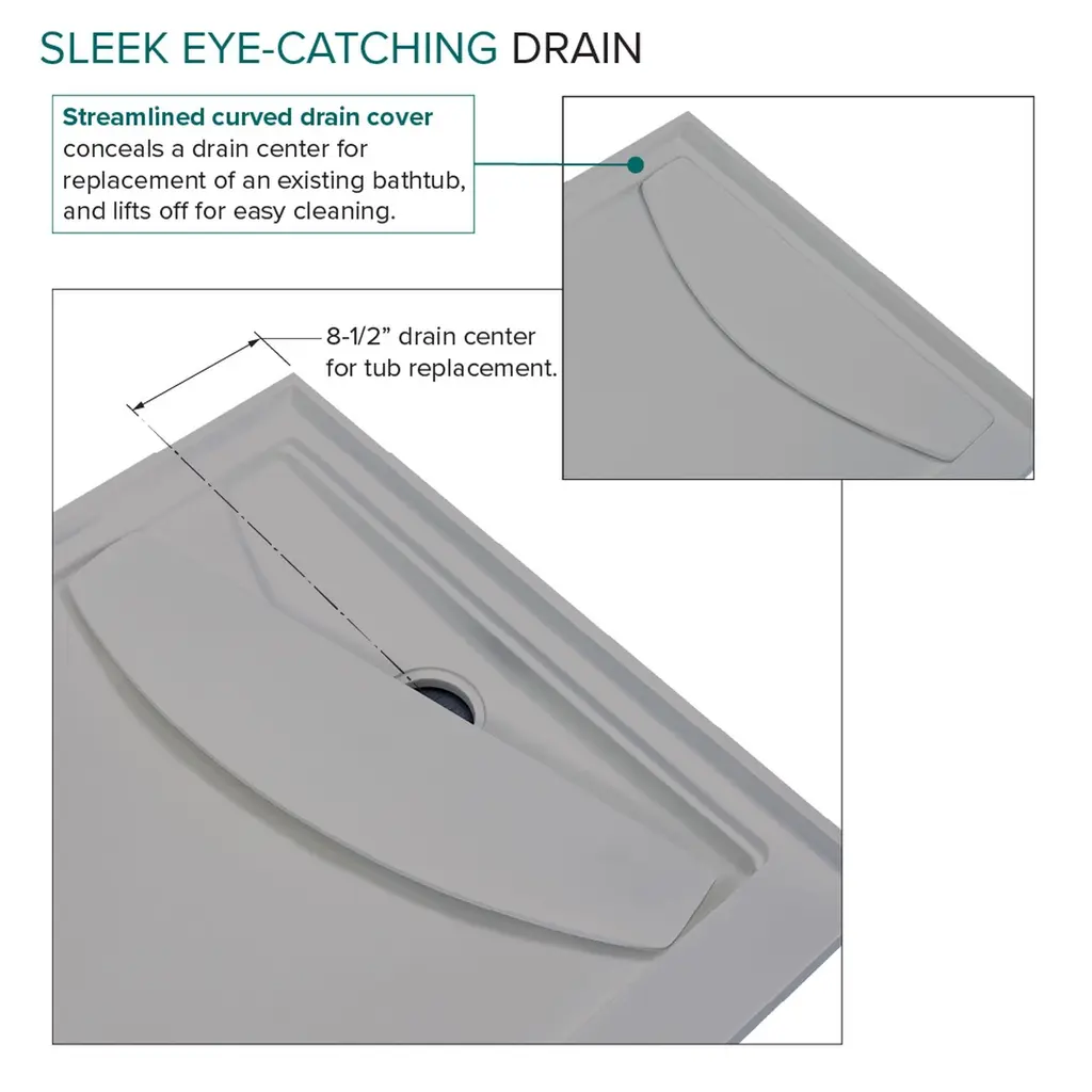 Upgrade your bathroom effortlessly with Transolid FSLB shower bases featuring an 8.5-in drain center location for direct tub replacement, converting a bathtub space into a spacious 60-in shower. A modern touch with a sleek aesthetic and low threshold for effortless entry and exit. Transolid's bases are crafted from solid material cast as a single piece, ensuring durability and consistency throughout. With a super dense construction, they are both easy to repair and soft to the touch.Transolid FSLB6032R Features:Transolid FSLB6032R Specifications: