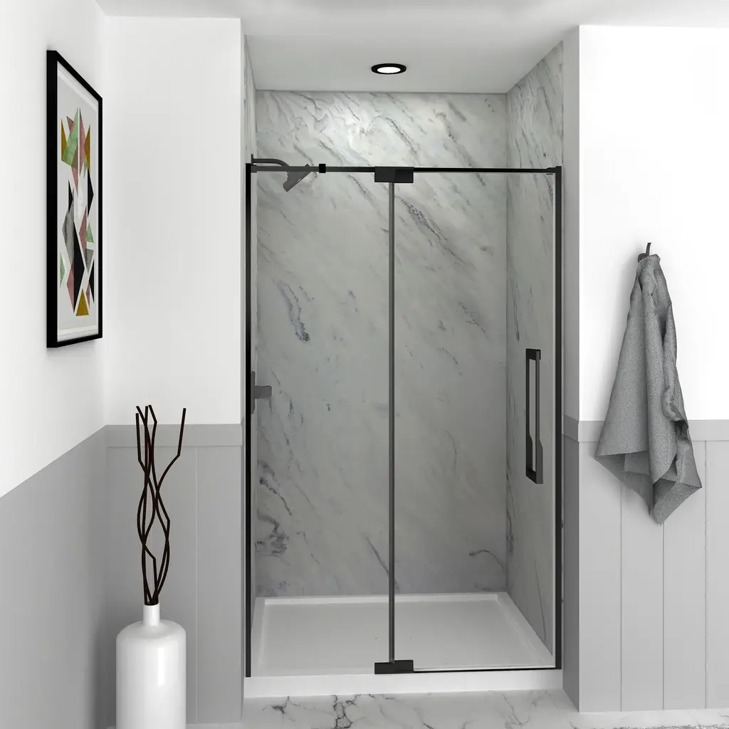 Transolid Ipd487610c-J 76" High X 48" Wide Pivot Semi Frameless Shower - Matte Black