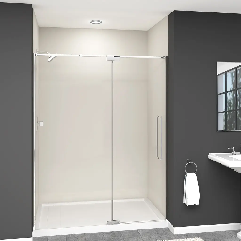 The Transolid Irene Pivot Shower Door Collection combines the practicality of a space saving design with custom quality craftsmanship. The collection features thick, premium 3/8 in. (10mm) clear tempered glass with professionally applied Nano clear glass coating, which provides superior dirt and water repellant and stain resistant benefits. The Irene door provides up to 1/4 in. of out-of-plumb adjustability on each side to provide a watertight fit in your alcove. The Irene Door is available in several different width, height and color combinations to match your bathroom's interior design and layout perfectly. Built for an alcove (3-wall) shower enclosure, pivot shower doors can be installed to open from the left or right with one panel remaining fixed. Multiple Transolid handle options are available, but this combination features the Turin handles, a unique, high-end design, adding a distinctive look to your Irene shower door. These handles are substantial in weight and are every bit as functional as they are beautiful. Look for the matching grab bar to complete the look!Transolid IPD607610C-T Features: