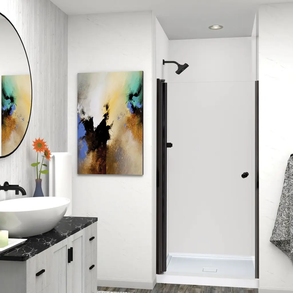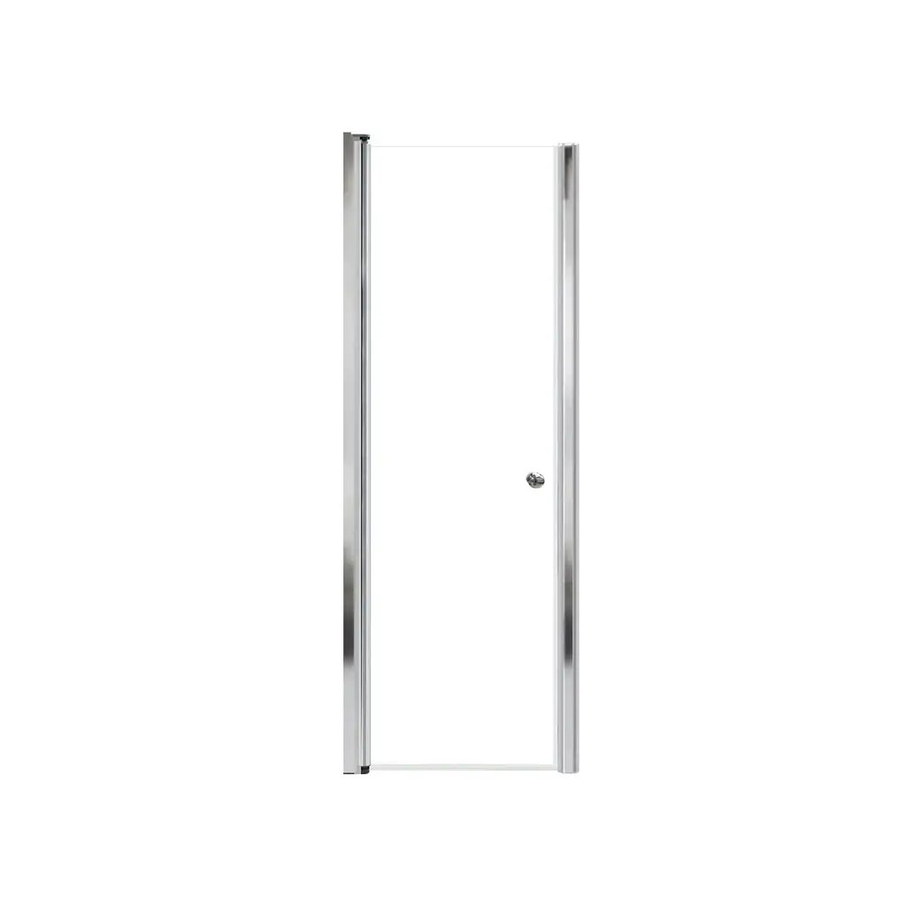 The Transolid Lyna shower door combines modern aesthetics with practical functionality. With its slim pivot design and 1/4-in clear tempered glass, this door brings a contemporary touch to your bathroom, while ensuring durability and safety. The double side knobs provide easy access and operation, allowing for a seamless shower experience. Crafted with an aluminum alloy swing frame, this door offers a sturdy and reliable construction. The magnetic profile and seal not only ensure a secure closure but also enable up to 1-in out-of-plumb adjustment, accommodating uneven walls with ease. Standing tall at 70-in high, the Lyna door creates an open and inviting shower space, allowing you to enjoy a luxurious and comfortable bathing experience. Upgrade your bathroom with the Lyna door and enjoy the perfect blend of style and practicality.Transolid LSD267006C Features: