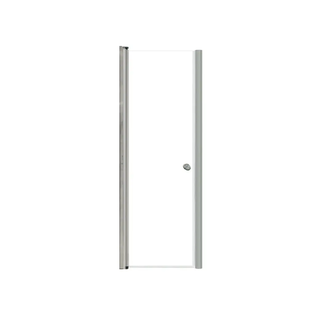 The Transolid Lyna shower door combines modern aesthetics with practical functionality. With its slim pivot design and 1/4-in clear tempered glass, this door brings a contemporary touch to your bathroom, while ensuring durability and safety. The double side knobs provide easy access and operation, allowing for a seamless shower experience. Crafted with an aluminum alloy swing frame, this door offers a sturdy and reliable construction. The magnetic profile and seal not only ensure a secure closure but also enable up to 1-in out-of-plumb adjustment, accommodating uneven walls with ease. Standing tall at 70-in high, the Lyna door creates an open and inviting shower space, allowing you to enjoy a luxurious and comfortable bathing experience. Upgrade your bathroom with the Lyna door and enjoy the perfect blend of style and practicality.Transolid LSD317006C Features: