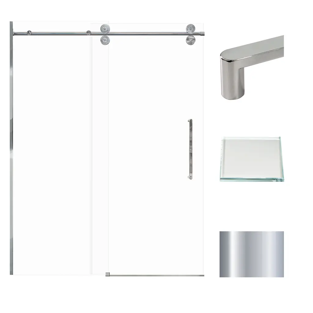 The Transolid Madeline Frameless Sliding Shower Door Collection offers an elegant, sophisticated look. It is available in 60 in. W and either 60 or 76 in. H and features thick, premium 5/16 in. (8mm) clear tempered glass with professionally applied Nano clear glass coating, which provides superior dirt and water repellant and stain resistant benefits. TruMotion® technology makes our shower doors close softly and effortlessly no matter how hard you slam them or how heavy they are and the Madeline door provides up to 3/8 in. of out-of-plumb adjustability on each side to provide a watertight fit in your alcove. The Madeline Door is available in several desirable hardware finish options to match your bathroom's interior design and layout perfectly. Built for an alcove (3-wall) shower enclosure, this door can be installed for the door to slide on the left or the right, with the other panel remaining in a fixed position. 20 in. (500 mm from center to center) vertical shower door handles enhance the modern look. Multiple Transolid handle options are available, but this combination features the Riley handles. The Riley handles feature a unique, high-end design, adding a distinctive look to your Madeline shower door. These handles are substantial in weight and are every bit as functional as they are beautiful. Look for the matching grab bar to complete the look!Transolid MBDT606008C-R Features: