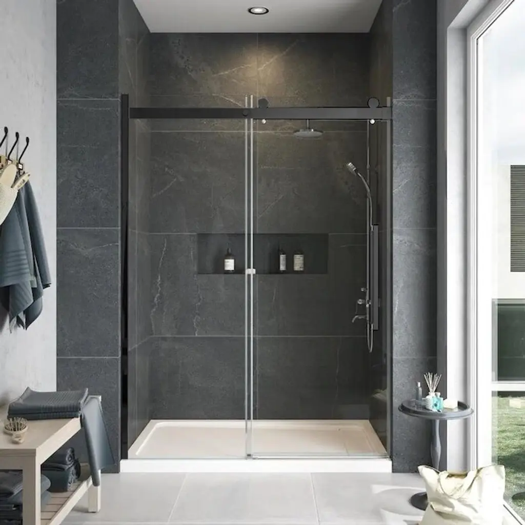 The Transolid Madeline Frameless Sliding Shower Door Collection offers an elegant, sophisticated look. It is available in 60 in. W and either 60 or 76 in. H and features thick, premium 5/16 in. (8mm) clear tempered glass with professionally applied Nano clear glass coating, which provides superior dirt and water repellant and stain resistant benefits. TruMotion® technology makes our shower doors close softly and effortlessly no matter how hard you slam them or how heavy they are and the Madeline door provides up to 3/8 in. of out-of-plumb adjustability on each side to provide a watertight fit in your alcove. The Madeline Door is available in several desirable hardware finish options to match your bathroom's interior design and layout perfectly. Built for an alcove (3-wall) shower enclosure, this door can be installed for the door to slide on the left or the right, with the other panel remaining in a fixed position. 20 in. (500 mm from center to center) vertical shower door handles enhance the modern look. Multiple Transolid handle options are available, but this combination features the Riley handles. The Riley handles feature a unique, high-end design, adding a distinctive look to your Madeline shower door. These handles are substantial in weight and are every bit as functional as they are beautiful. Look for the matching grab bar to complete the look!Transolid MBDT606008FL-R Features: