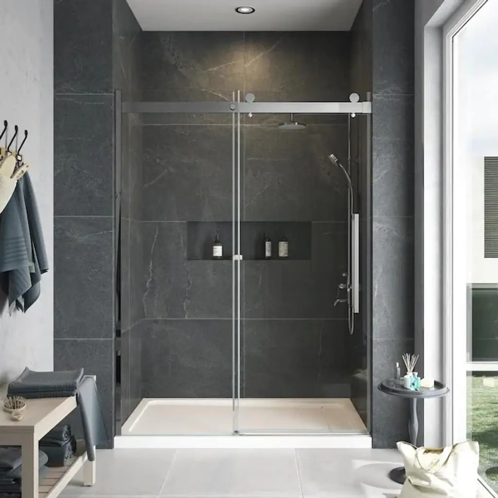 The Transolid Madeline Frameless Sliding Shower Door Collection offers an elegant, sophisticated look. It is available in 60 in. W and either 60 or 76 in. H and features thick, premium 5/16 in. (8mm) clear tempered glass with professionally applied Nano clear glass coating, which provides superior dirt and water repellant and stain resistant benefits. TruMotion® technology makes our shower doors close softly and effortlessly no matter how hard you slam them or how heavy they are and the Madeline door provides up to 3/8 in. of out-of-plumb adjustability on each side to provide a watertight fit in your alcove. The Madeline Door is available in several desirable hardware finish options to match your bathroom's interior design and layout perfectly. Built for an alcove (3-wall) shower enclosure, this door can be installed for the door to slide on the left or the right, with the other panel remaining in a fixed position. 20 in. (500 mm from center to center) vertical shower door handles enhance the modern look. Multiple Transolid handle options are available, but this combination features the Justin handles. The Justin handles feature a unique, high-end design, adding a distinctive look to your Madeline shower door. These handles are substantial in weight and are every bit as functional as they are beautiful. Look for the matching grab bar to complete the look!Transolid MBDT607608C-J Features: