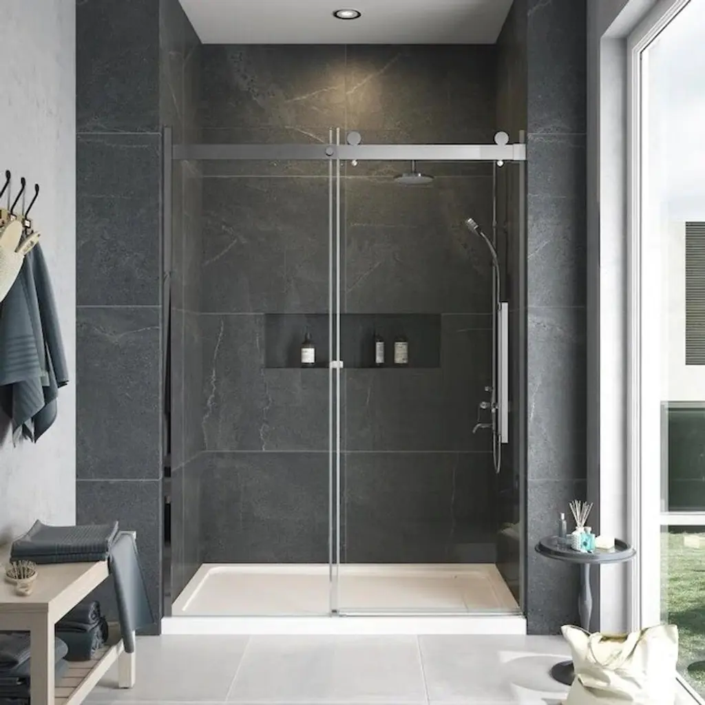 The Transolid Madeline Frameless Sliding Shower Door Collection offers an elegant, sophisticated look. It is available in 60 in. W and either 60 or 76 in. H and features thick, premium 5/16 in. (8mm) clear tempered glass with professionally applied Nano clear glass coating, which provides superior dirt and water repellant and stain resistant benefits. TruMotion® technology makes our shower doors close softly and effortlessly no matter how hard you slam them or how heavy they are and the Madeline door provides up to 3/8 in. of out-of-plumb adjustability on each side to provide a watertight fit in your alcove. The Madeline Door is available in several desirable hardware finish options to match your bathroom's interior design and layout perfectly. Built for an alcove (3-wall) shower enclosure, this door can be installed for the door to slide on the left or the right, with the other panel remaining in a fixed position. 20 in. (500 mm from center to center) vertical shower door handles enhance the modern look. Multiple Transolid handle options are available, but this combination features the Justin handles. The Justin handles feature a unique, high-end design, adding a distinctive look to your Madeline shower door. These handles are substantial in weight and are every bit as functional as they are beautiful. Look for the matching grab bar to complete the look!Transolid MBDT607608FL-J Features: