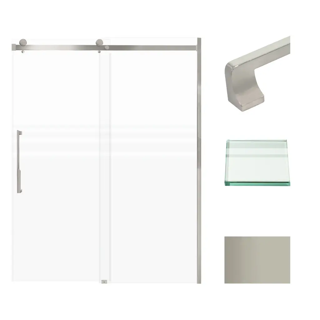The Transolid Madeline Frameless Sliding Shower Door Collection offers an elegant, sophisticated look. It is available in 60 in. W and either 60 or 76 in. H and features thick, premium 5/16 in. (8mm) clear tempered glass with professionally applied Nano clear glass coating, which provides superior dirt and water repellant and stain resistant benefits. TruMotion® technology makes our shower doors close softly and effortlessly no matter how hard you slam them or how heavy they are and the Madeline door provides up to 3/8 in. of out-of-plumb adjustability on each side to provide a watertight fit in your alcove. The Madeline Door is available in several desirable hardware finish options to match your bathroom's interior design and layout perfectly. Built for an alcove (3-wall) shower enclosure, this door can be installed for the door to slide on the left or the right, with the other panel remaining in a fixed position. 20 in. (500 mm from center to center) vertical shower door handles enhance the modern look. Multiple Transolid handle options are available, but this combination features the Riley handles. The Riley handles feature a unique, high-end design, adding a distinctive look to your Madeline shower door. These handles are substantial in weight and are every bit as functional as they are beautiful. Look for the matching grab bar to complete the look!Transolid MBDT607608FL-R Features: