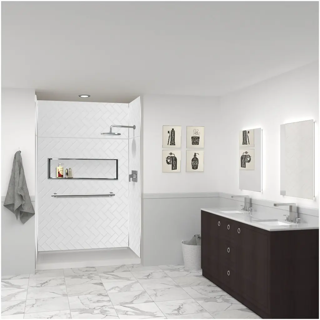 Tile patterns are a classic staple for design, and Transolid is staying current with their trending tile pattern wall offering - all without the mess of grout. Prodigy walls are simply glued over any existing surface, making them perfect for any remodel project with no messy demolition or install required! These shower walls are hygienic, durable, stain resistant, easy to clean, and are ideal for both new and existing construction. Trimmable to fit any job, they can be used for showers with windows or those with tapered walls. All Transolid shower walls are backed by a hassle-free 10-year limited warranty. Transolid is confident these trendy bathroom wall panels are the right choice for your project!Transolid PWKX60367224 Features:Transolid PWKX60367224 Specifications: