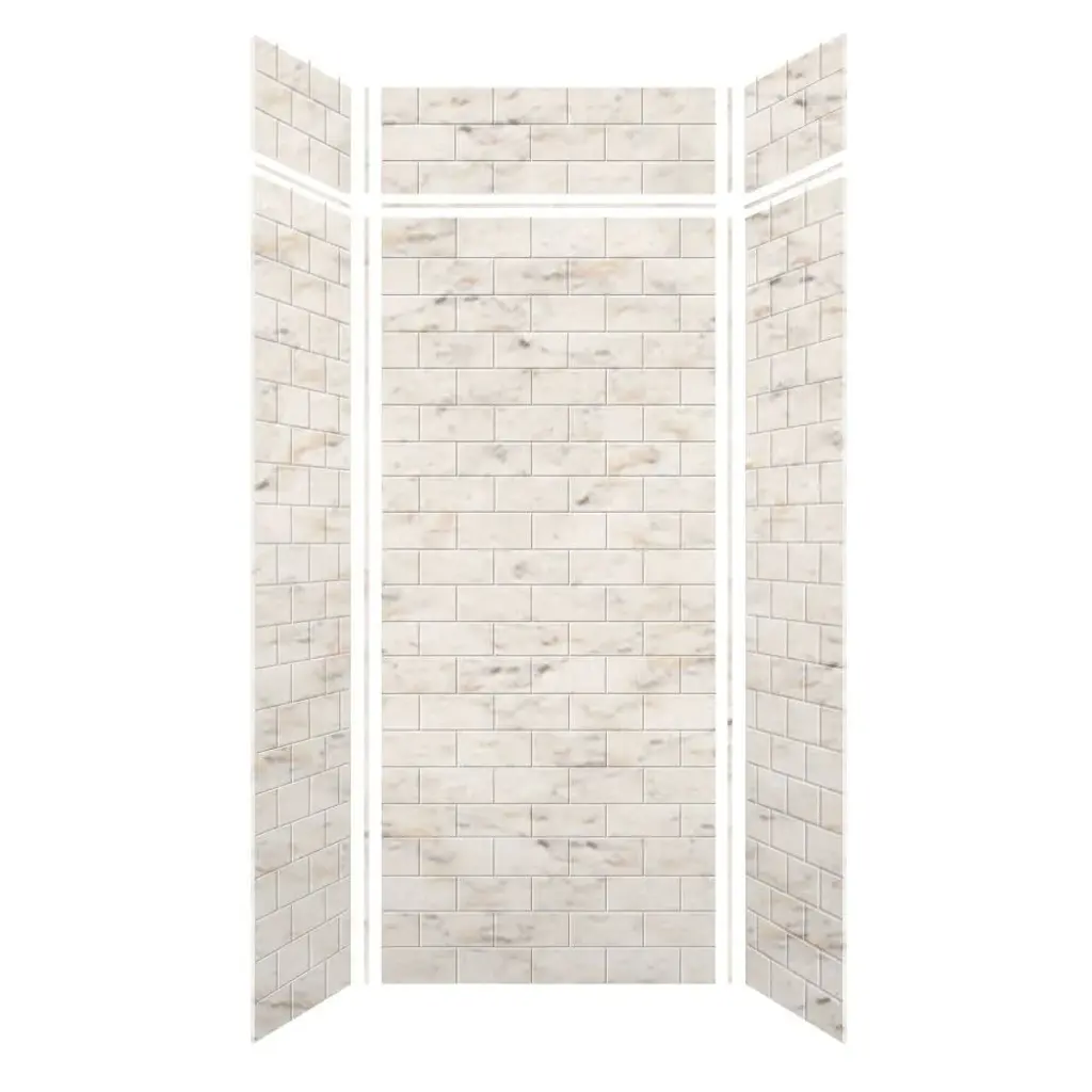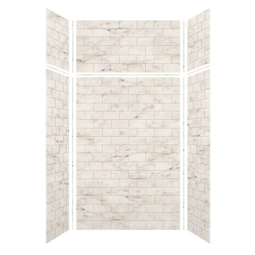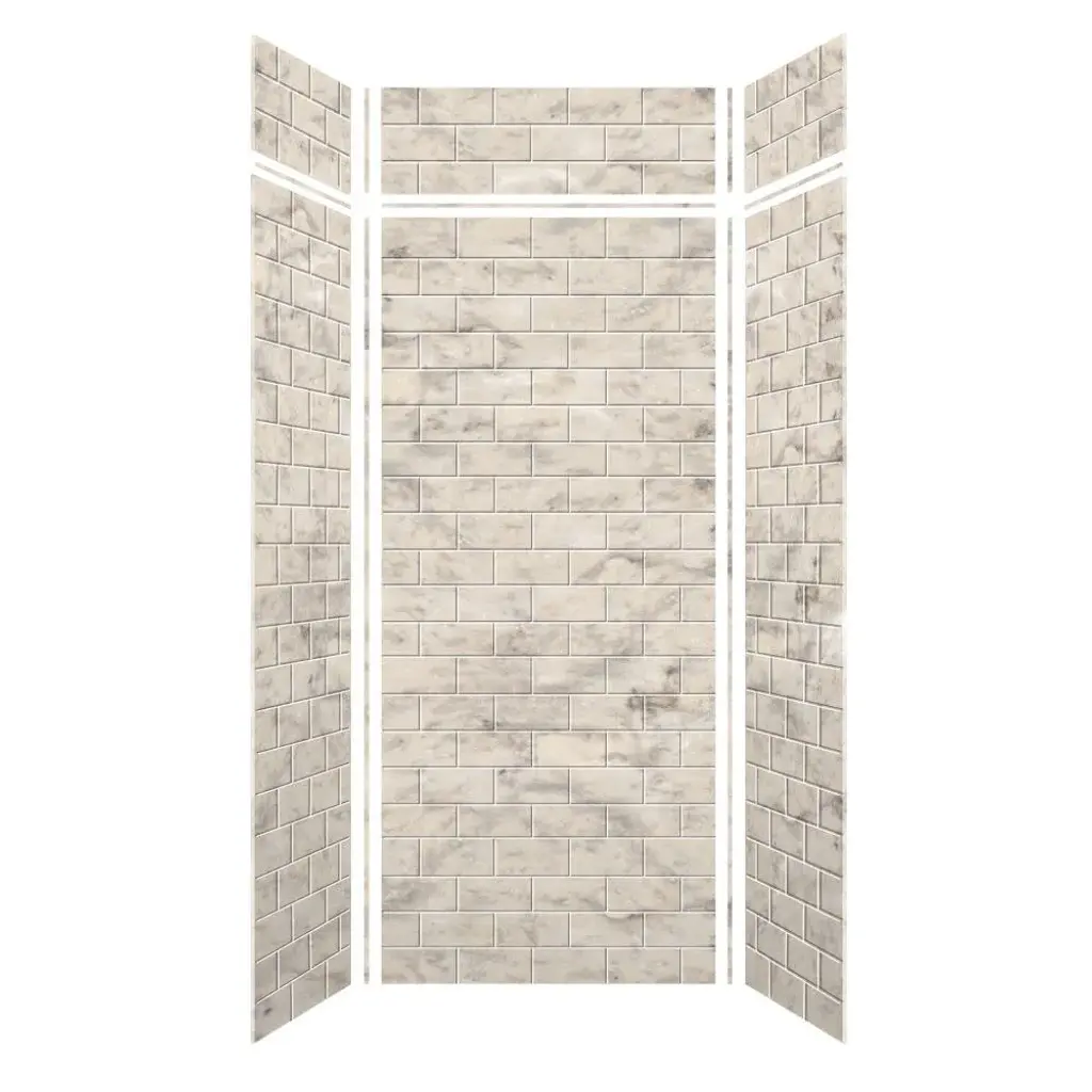 Transolid Swk363672 Saramar 36" W X 36" D X 72" H Three Panel Shower - Biscotti Marble Subway Tile