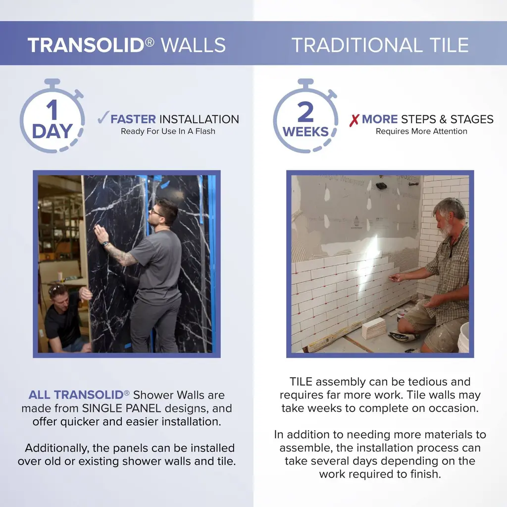 Subway tile has become a staple for design and Transolid is staying current with this trend by offering the SaraMar bath and shower wall panels. Subway tile offers a classic element that can elevate the design of any room; however, its clean and bright characteristics really appeal to a bathroom. These walls are ideal for a quick remodel, because there is no messy demolition required, instead, SaraMar walls simply glue right over your existing surface. SaraMar walls are hygienic, durable, and resistant to stain; they work with new and existing construction, they are trimmable to fit any space, and are on trend with the latest colors and patterns. Discover whether these bathroom wall panels are the right choice for you!Transolid SWK603660 Features:Transolid SWK603660 Specifications: